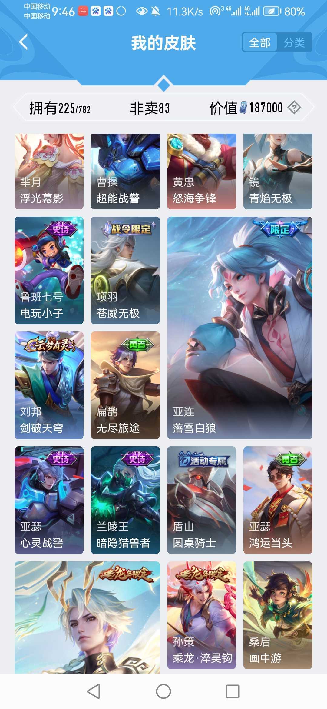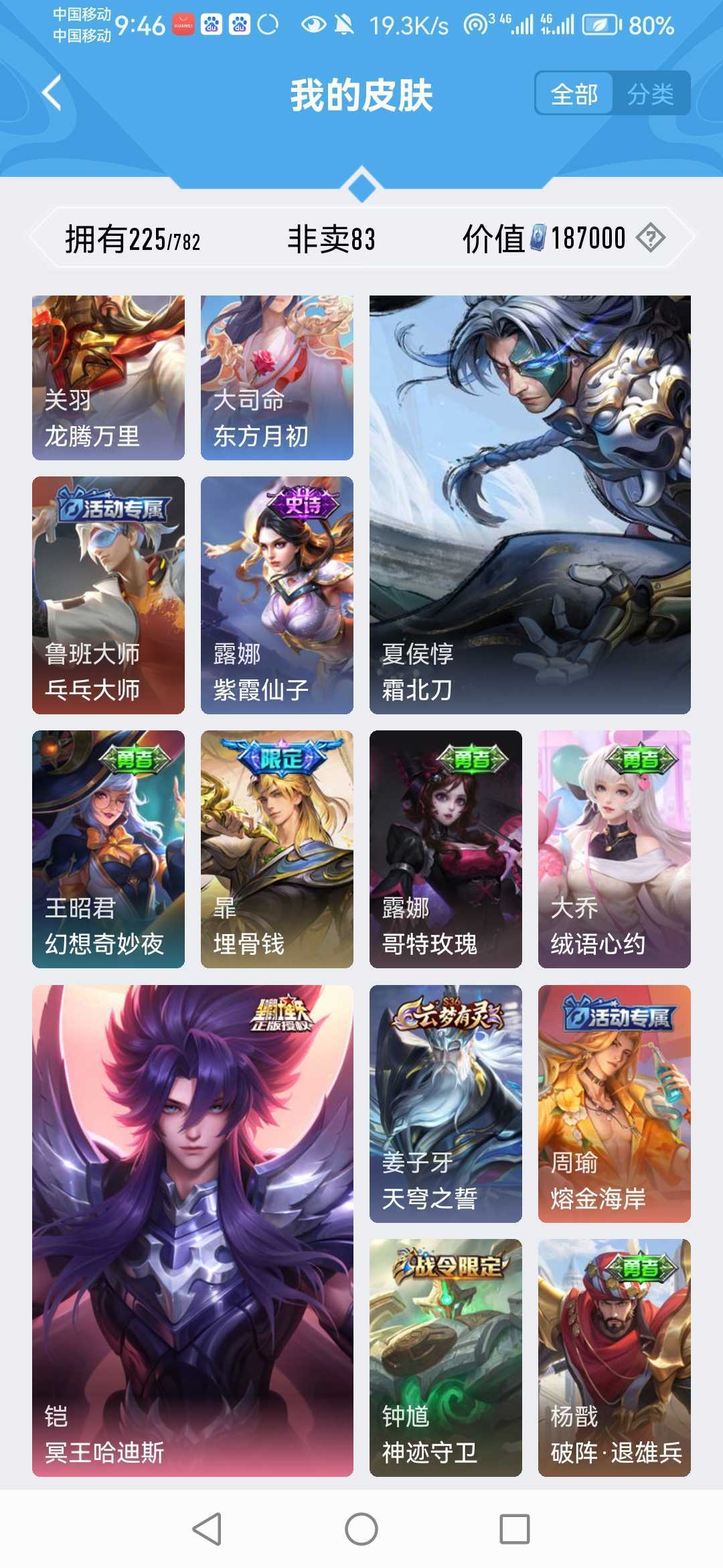 783皮肤♥皮肤共享道具多♥新皮肤已秒🎁无双荣耀v10V11v12 🎁满英雄🎃满荣耀皮肤,满铭文,安卓QQ230区。顶级神号装逼号牛逼