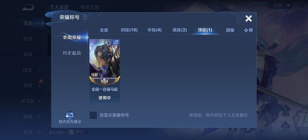 立即租号首页 > 租号大厅 > 王者荣耀 > 标题写明区服/QQ > 小国标马超在榜⭐省标裴擒虎⭐巅峰万强闪电框⭐可排位/禁巅峰/禁挂机