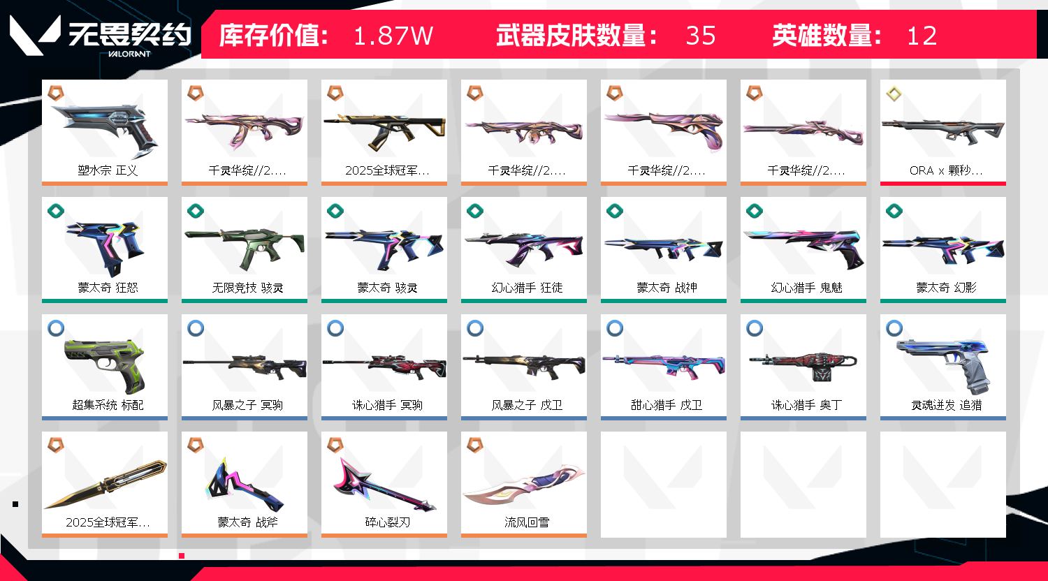 首页 > 租号大厅 > 无畏契约-wegame > wegame/wegame > 千灵华绽2.0全套,25冠军套,颗秒m4,塑水宗正义,可排位