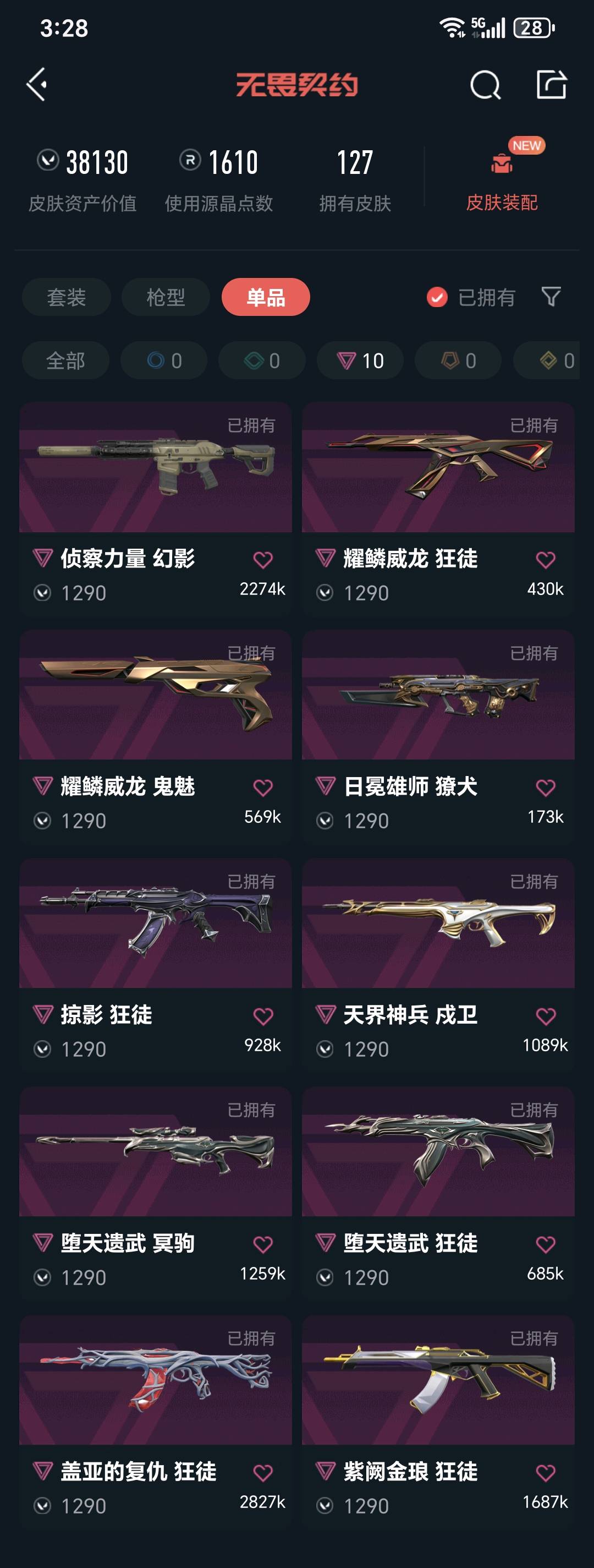 • 皮肤资产价值: 38130