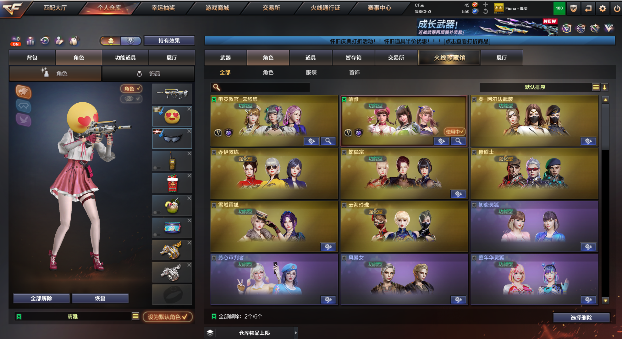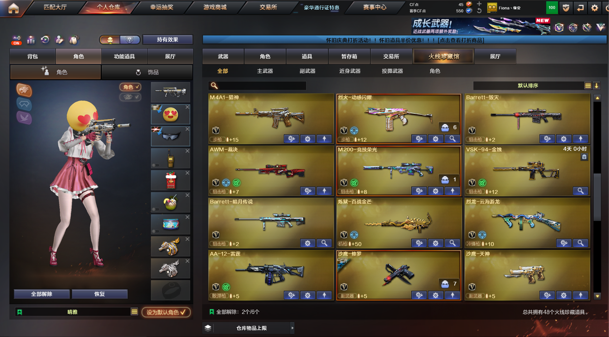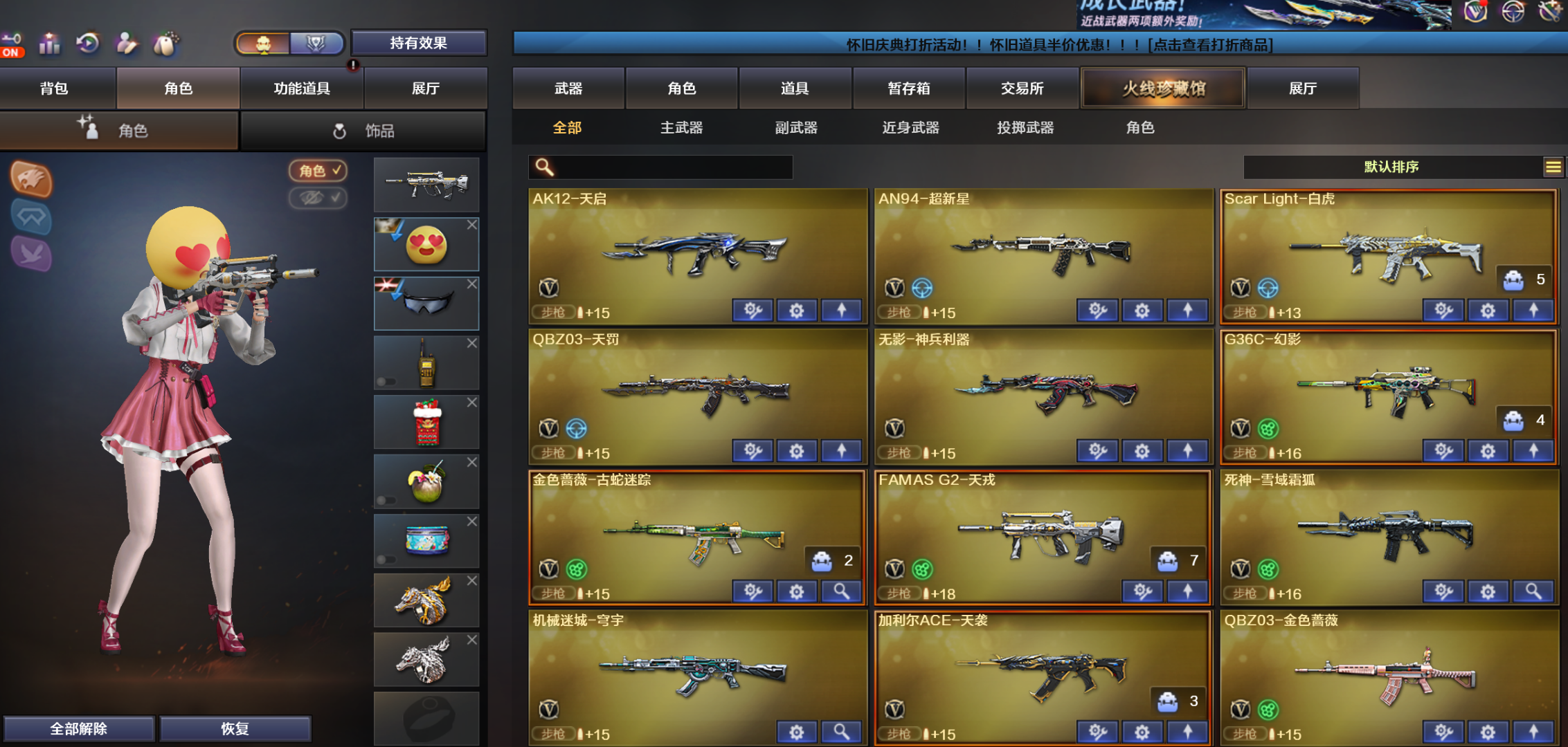 50V晴雅 云悠悠 竞技荣光套装 G36C幻影 ACE天袭 法玛斯天绒 M4A1-雷神;炽芒蝶刃,电竞教官-云悠悠,晴雅,QBZ03-金色蔷薇,G36C-幻影,Scar Light-白虎,加利尔ACE-天袭,