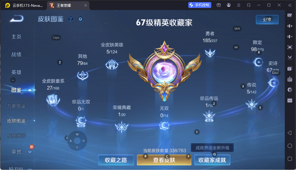 【非云直上】V10★皮肤榜一★539皮满典藏★鲁班时之奇旅会员★虞姬黛羽霜翎星元★吕布白金战神★全能大师★多金标★个性按键