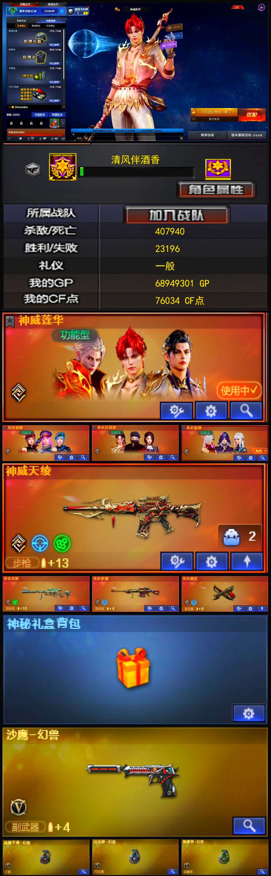 双神威幻兽♥金色礼盒幻神星神裁决满配三件套♥满级八面带卡幻影法玛斯天袭满手枪3蝴蝶刀双玄武满生化皮肤