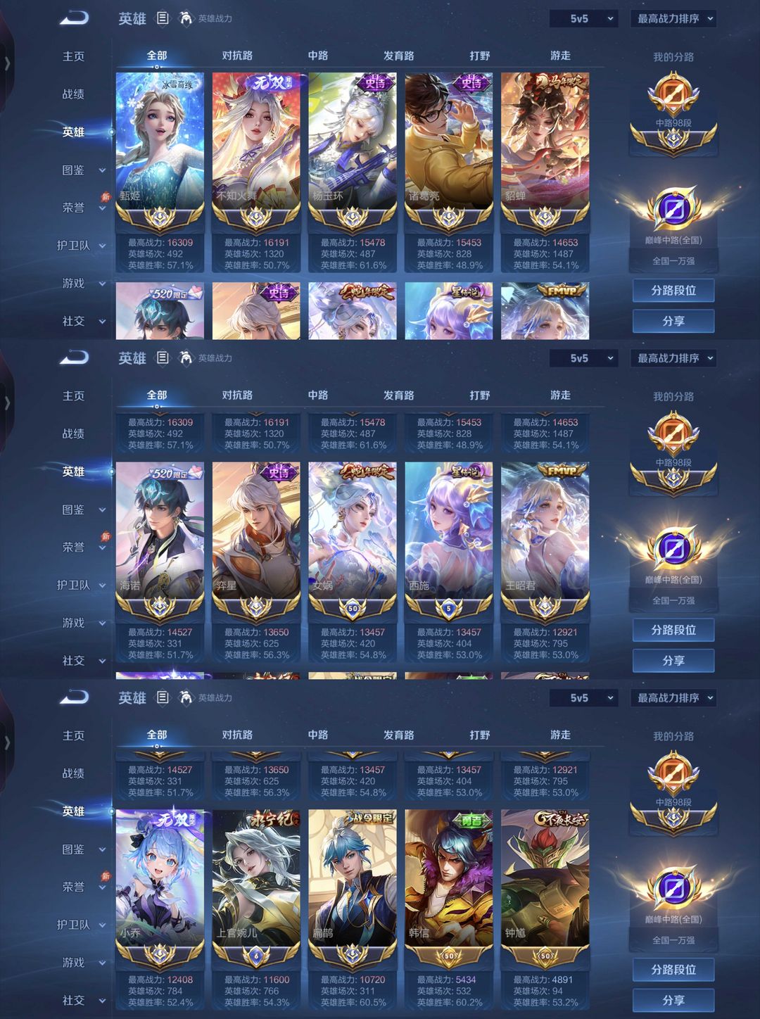 女号四月在榜国服第六中路+3小国标西施女娲甄姬+9个省标❤️巅峰2k历1w6貂蝉王昭君小乔