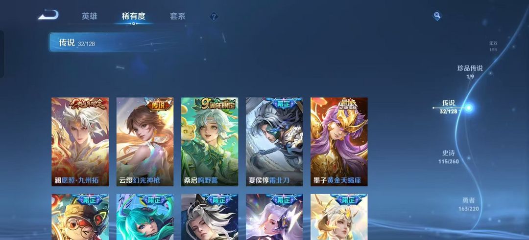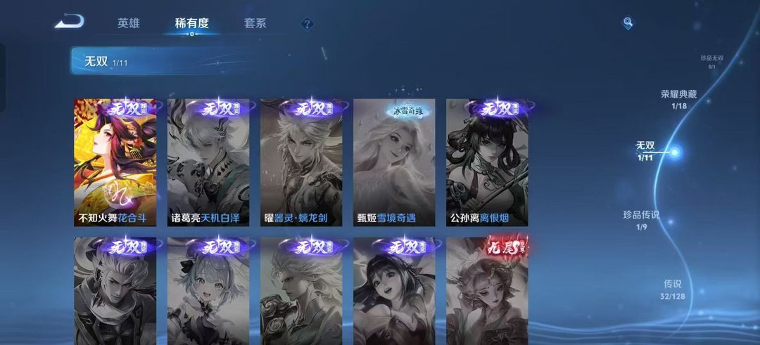 一典藏⚡️一无双⚡️韩信猎影典藏⚡️火舞花合斗⚡️马克怪盗基德⚡️32传说皮⚡️115史诗皮