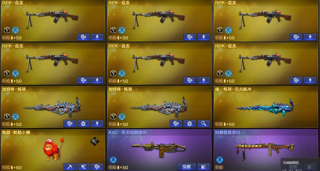主流武器都有可排位可生化;USP-雷暴,炽芒蝶刃,隼,电竞教官-云悠悠,RPK-盘龙,QBZ03-金色蔷薇,G36C-幻影,