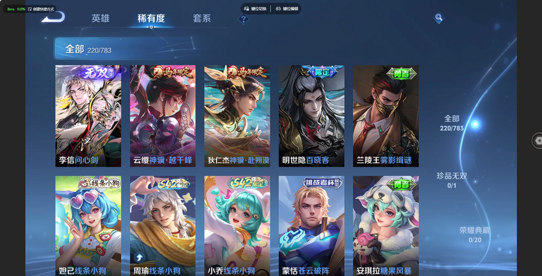 V10、550皮14水、吕布典藏-千魇归渊、云缨-神骥·越千峰、怪盗基德、伽罗星传说红枫、瑶典藏拾光映像、冥王哈迪斯、、龙年限定、齐天大圣