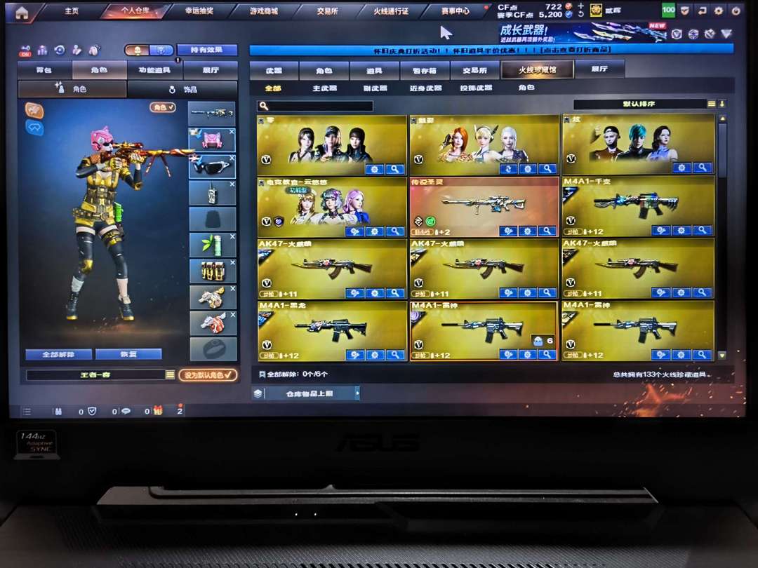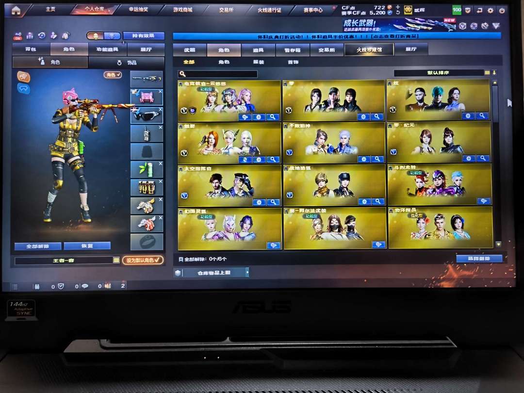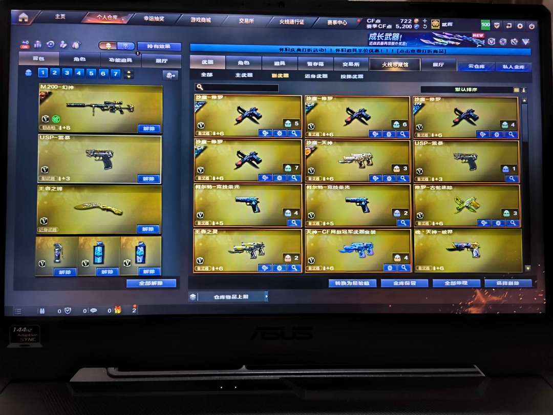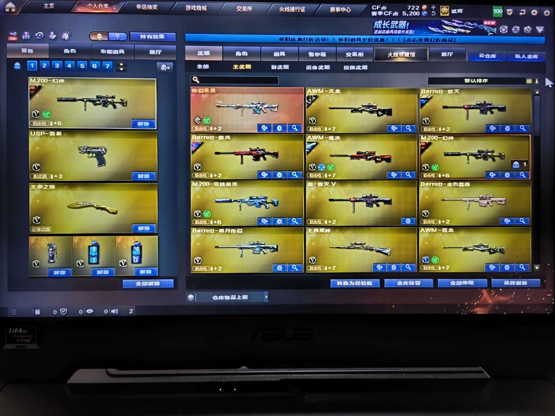 传说武器:传说圣灵 王者武器10:王者星神、王者火魄、王者冰魄、王者之势、王者之武、王者之心、王者之锋、王者之城、王者之灵、王者之击 王者角色:王者春、王者魅影、王者凌霄 英雄级角色:云悠悠、炫、魅影以及各种三防蓝V和三防功能型角色 英雄级123:幻神(丹凤、电流骇客) QBZ03(破浪逐光) 柯尔特竞技荣光×2 USP雷暴 竞技荣光全套 网剧冠军套装 五盘二炼狱 四烈龙 六黑骑士 英雄级手七套 音效卡:雷神、黑骑士、火麒麟、毁灭 五修罗(CF STER、能量核心、2018、星空)一天神(暗月) 雷神(冠军LGD、CFS2019、耀金、虎将、再燃火线、宇航兔、星空) 黑骑士(冠军之势、地狱火、耀金、白马银枪、暗月) 火麒麟(传奇EVEN、华夏之心、雷神、CF STER、AG、百城、心动糖果、斗烈龙驹、再燃火线) 黑龙(361) 天龙(白鲨、70kg、秘银) 毁灭(AG、2018、耀金) 裁决(叶芒苍灵、羽掣、运输船、胜者为王) 无影(耀金、暗月) 屠龙×4(破浪逐光×2、荣耀、彼岸花、惊鸿)、屠龙斗烈龙驹、屠龙电竞之星、擎天、龙啸(青青莓果、蛇姬、再燃火线) 白虎电玩蓝兔AB背包