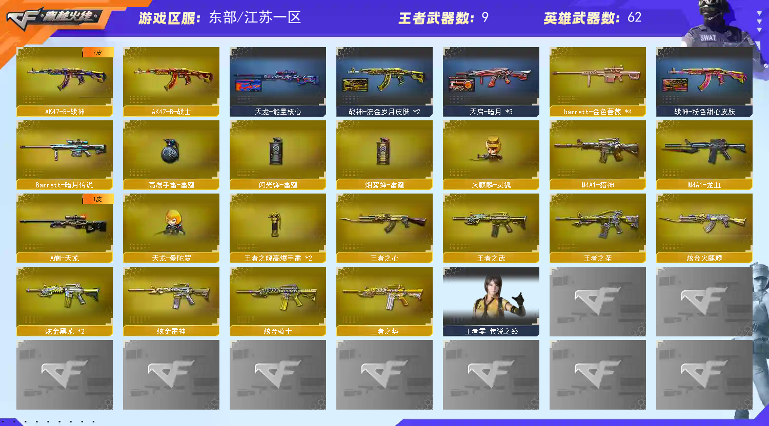 • 游戏区服:穿越火线 / 东部 / 江苏一区