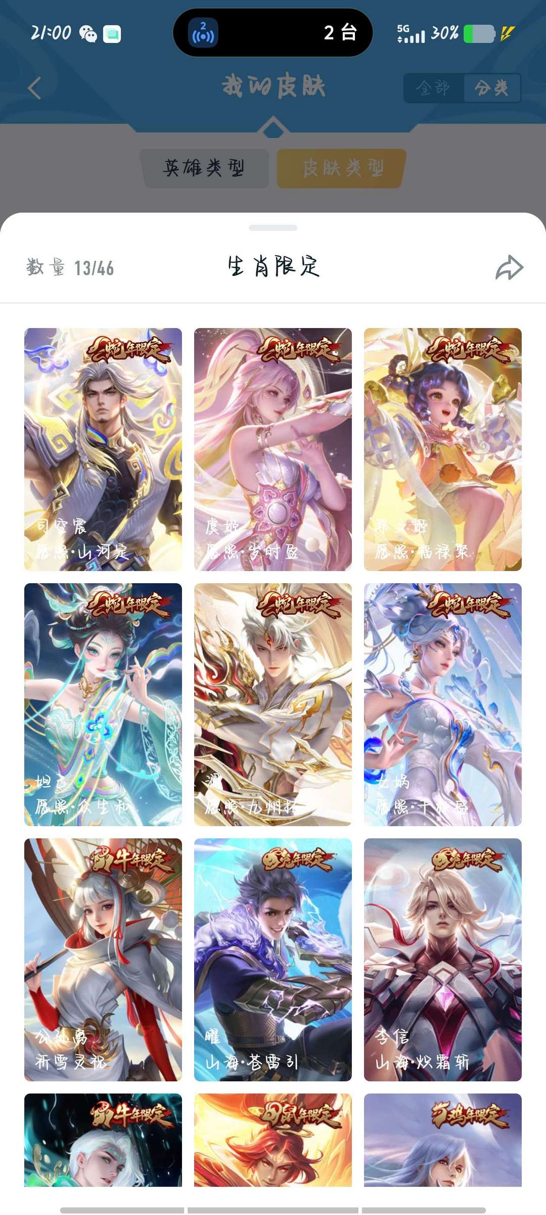 V10、550皮14水、吕布典藏-千魇归渊、云缨-神骥·越千峰、怪盗基德、伽罗星传说红枫、瑶典藏拾光映像、冥王哈迪斯、、龙年限定、齐天大圣