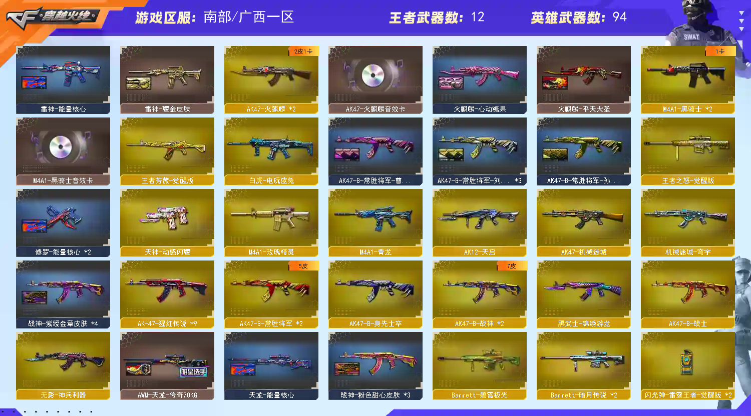 • 游戏区服:穿越火线 / 南部 / 广西一区