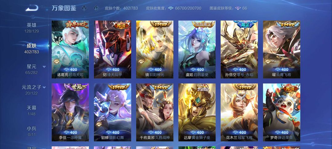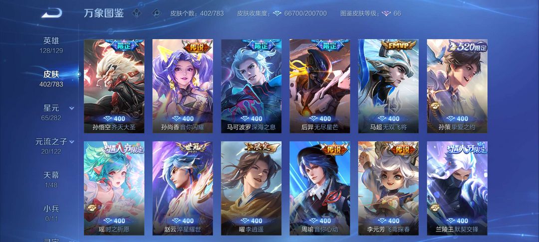 【非云直上】537满皮满典藏12星元◎鲁班新皮◎虞姬星元◎天使星元◎白金战神◎妲己绝版星元