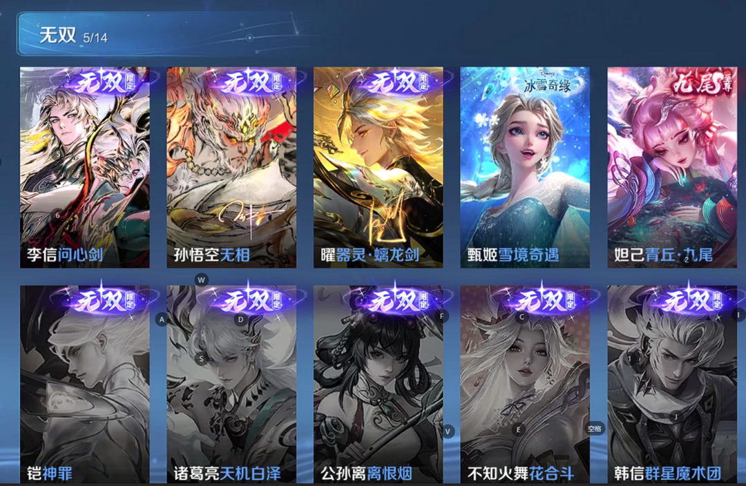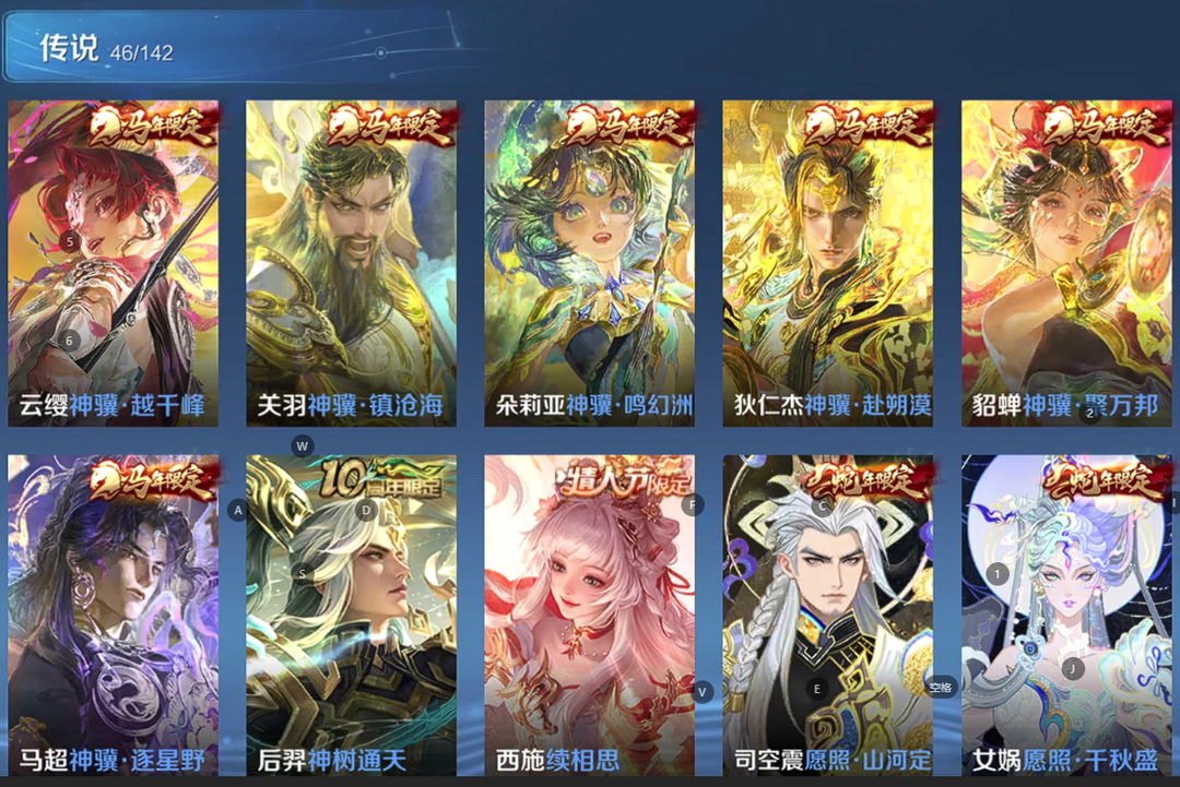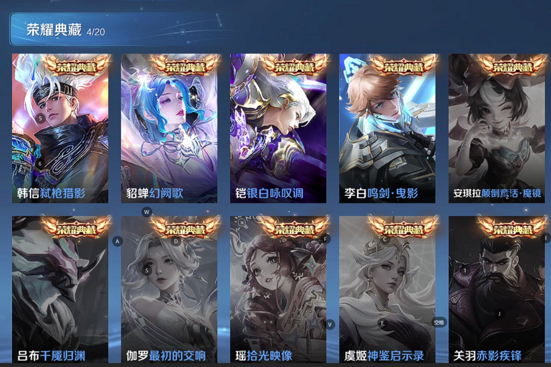 V10、550皮14水、吕布典藏-千魇归渊、云缨-神骥·越千峰、怪盗基德、伽罗星传说红枫、瑶典藏拾光映像、冥王哈迪斯、、龙年限定、齐天大圣