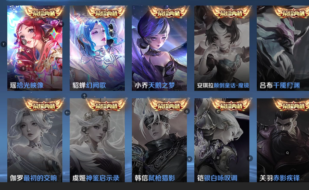 V10、550皮14水、吕布典藏-千魇归渊、云缨-神骥·越千峰、怪盗基德、伽罗星传说红枫、瑶典藏拾光映像、冥王哈迪斯、、龙年限定、齐天大圣