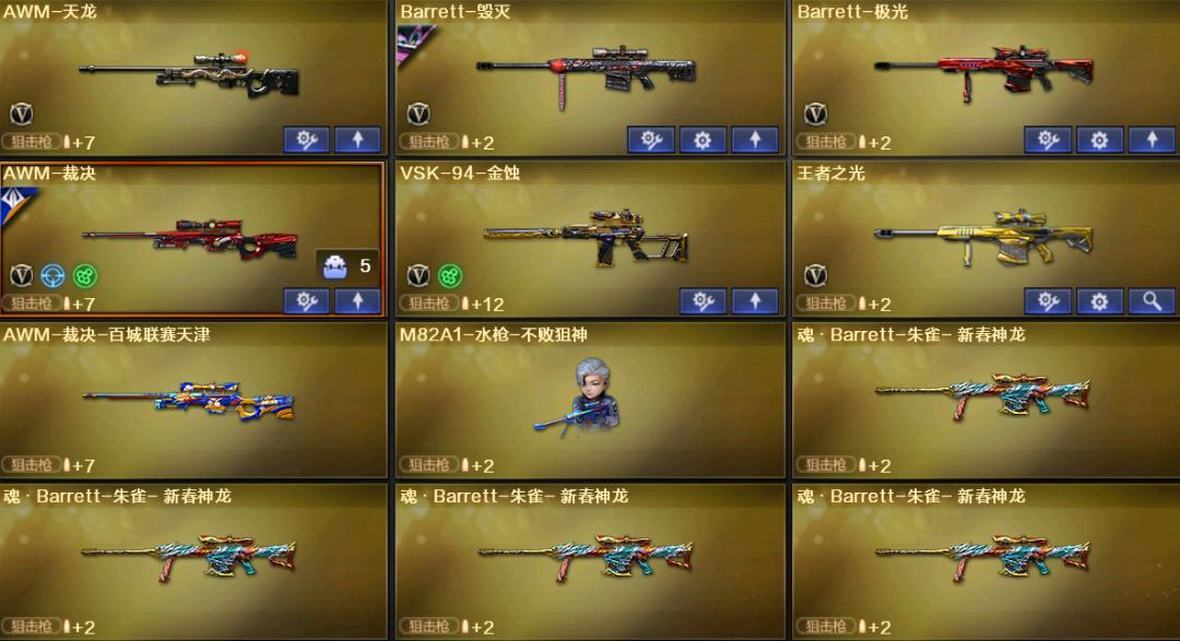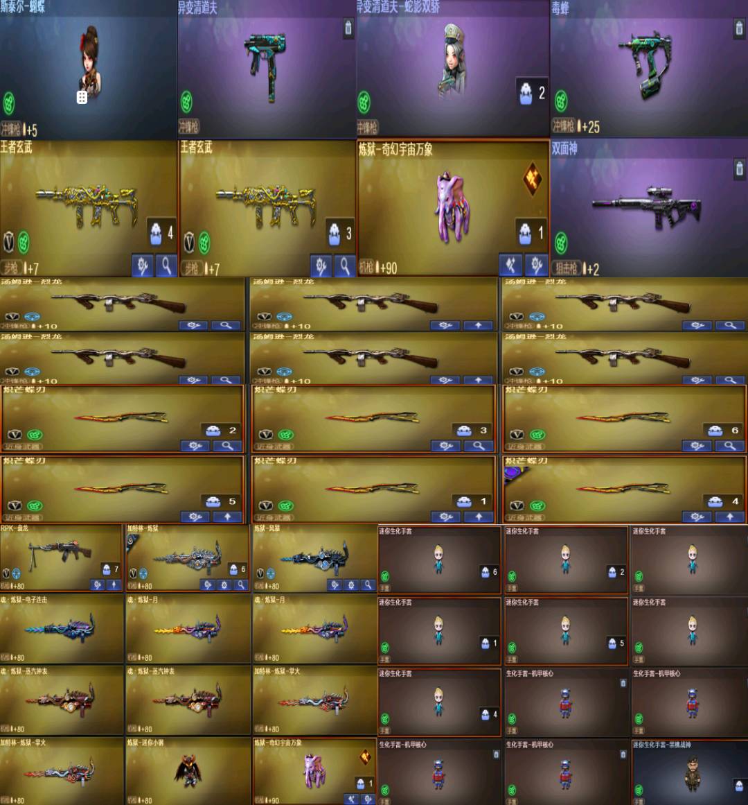 生化爆破双全装,六烈六盘,神威,蝴蝶刀,玄武;炽芒蝶刃,隼,RPK-盘龙,QBZ03-金色蔷薇,