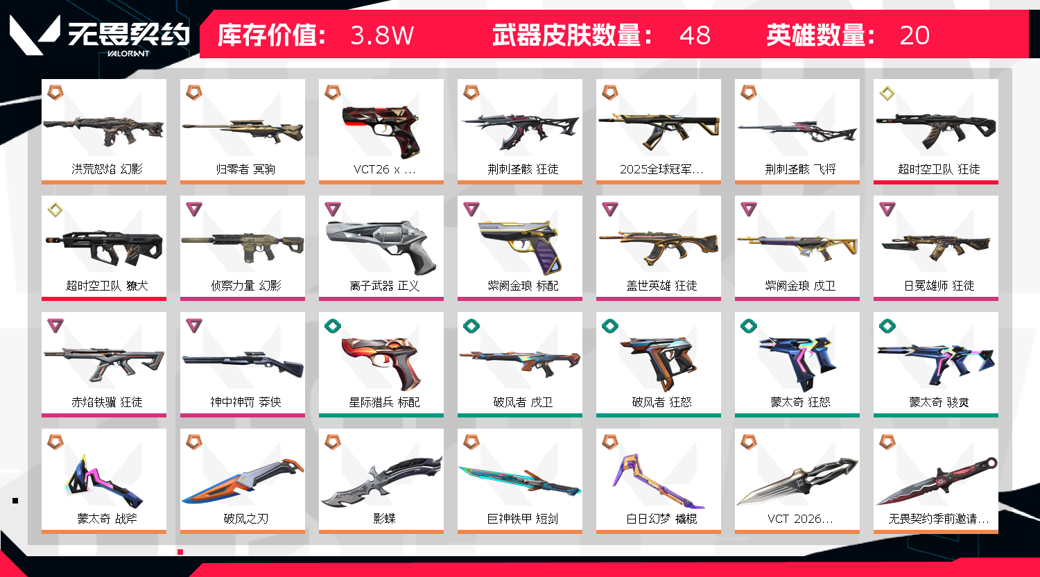 禁止外挂禁止骂人 禁止骂人;侦察力量 幻影,洪荒怒焰 幻影,归零者 冥驹,离子武器 正义,紫阙金琅 标配,