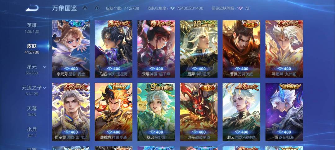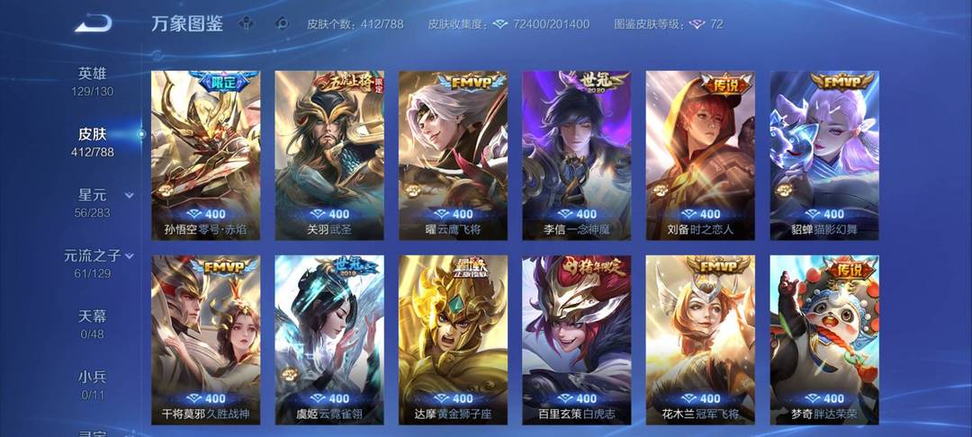 【非云直上】537满皮满典藏12星元◎鲁班新皮◎虞姬星元◎天使星元◎白金战神◎妲己绝版星元