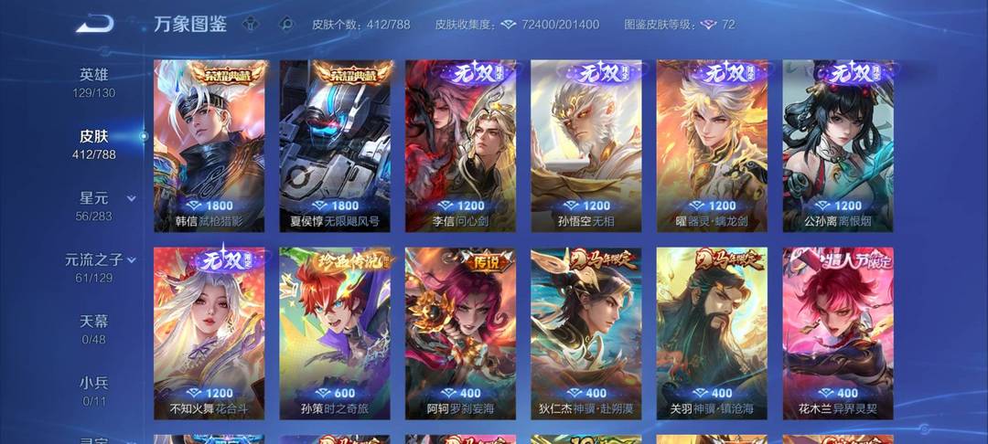 上不去看最后一张图游戏名字长租扫码上号无双贵族10,年限全满极736皮猴子无双无相,满珍品,11无双,10典藏,神威,炽阳神光,还有许多极品皮肤看图皮肤