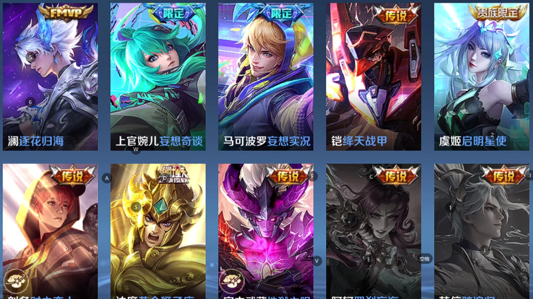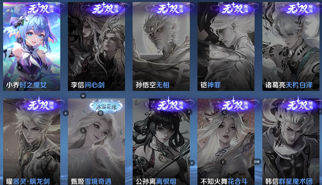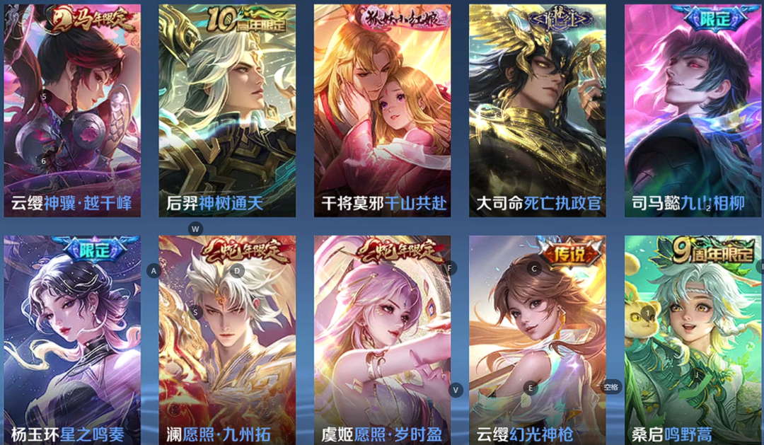 v10、12水563皮、神骥·逐星野、·死亡执政官、刘备星传说时之思念、瑶无双真我赫兹、愿照·九州拓、怪盗基德、画中仙、至尊宝、凤求凰、神威、天魔缭乱