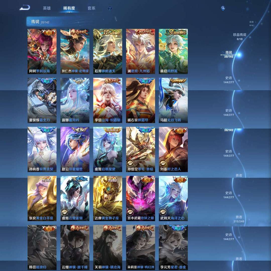 【非云直上】V10★皮肤榜一★539皮满典藏★鲁班时之奇旅会员★虞姬黛羽霜翎星元★吕布白金战神★全能大师★多金标★个性按键