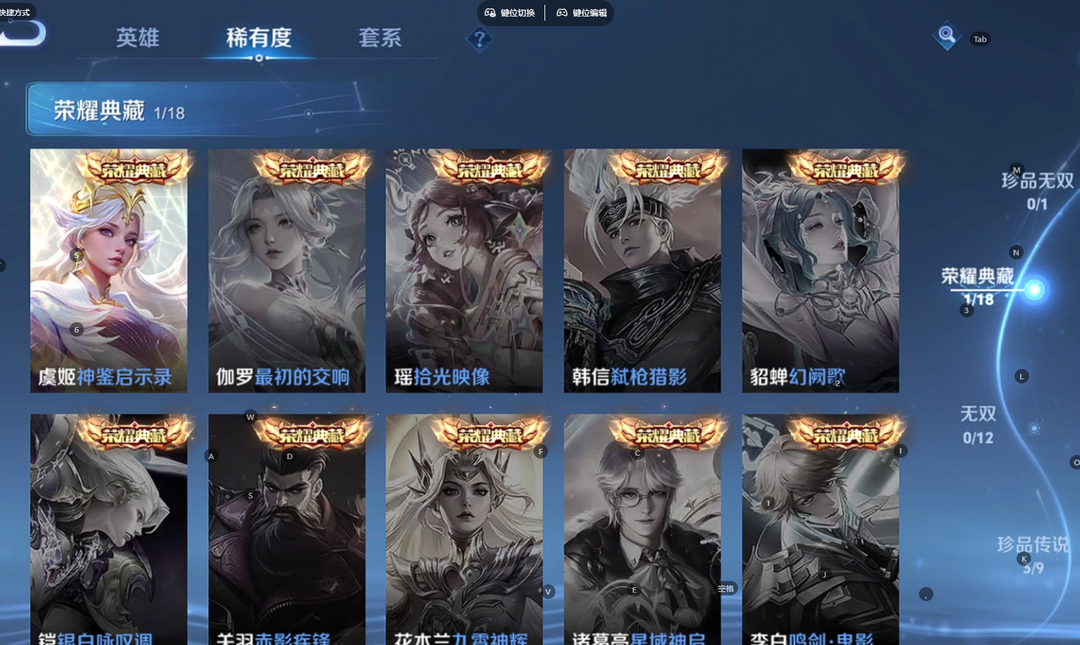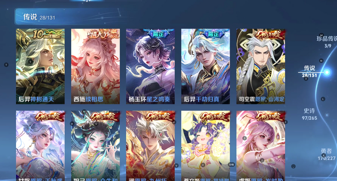 V10、550皮14水、吕布典藏-千魇归渊、云缨-神骥·越千峰、怪盗基德、伽罗星传说红枫、瑶典藏拾光映像、冥王哈迪斯、、龙年限定、齐天大圣