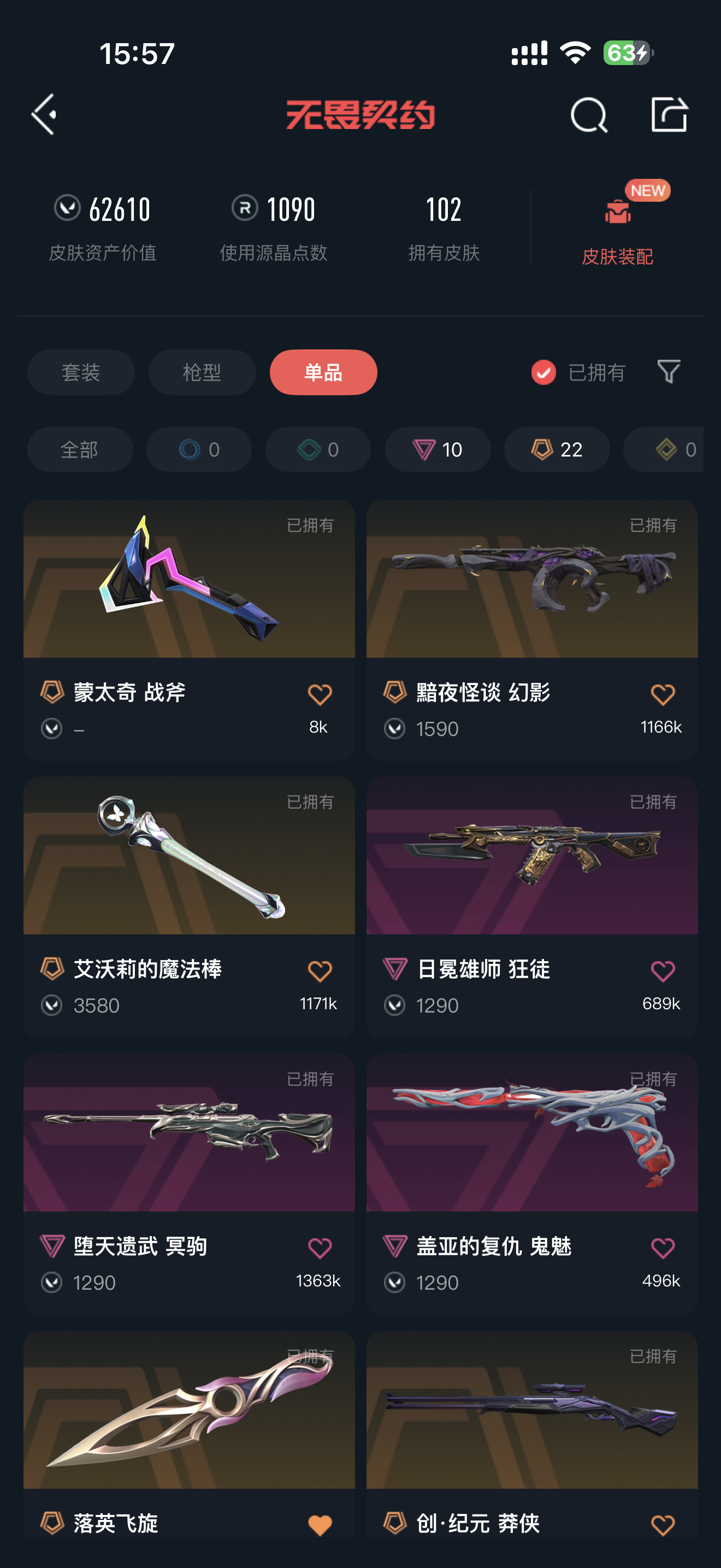 • 皮肤资产价值: 62610