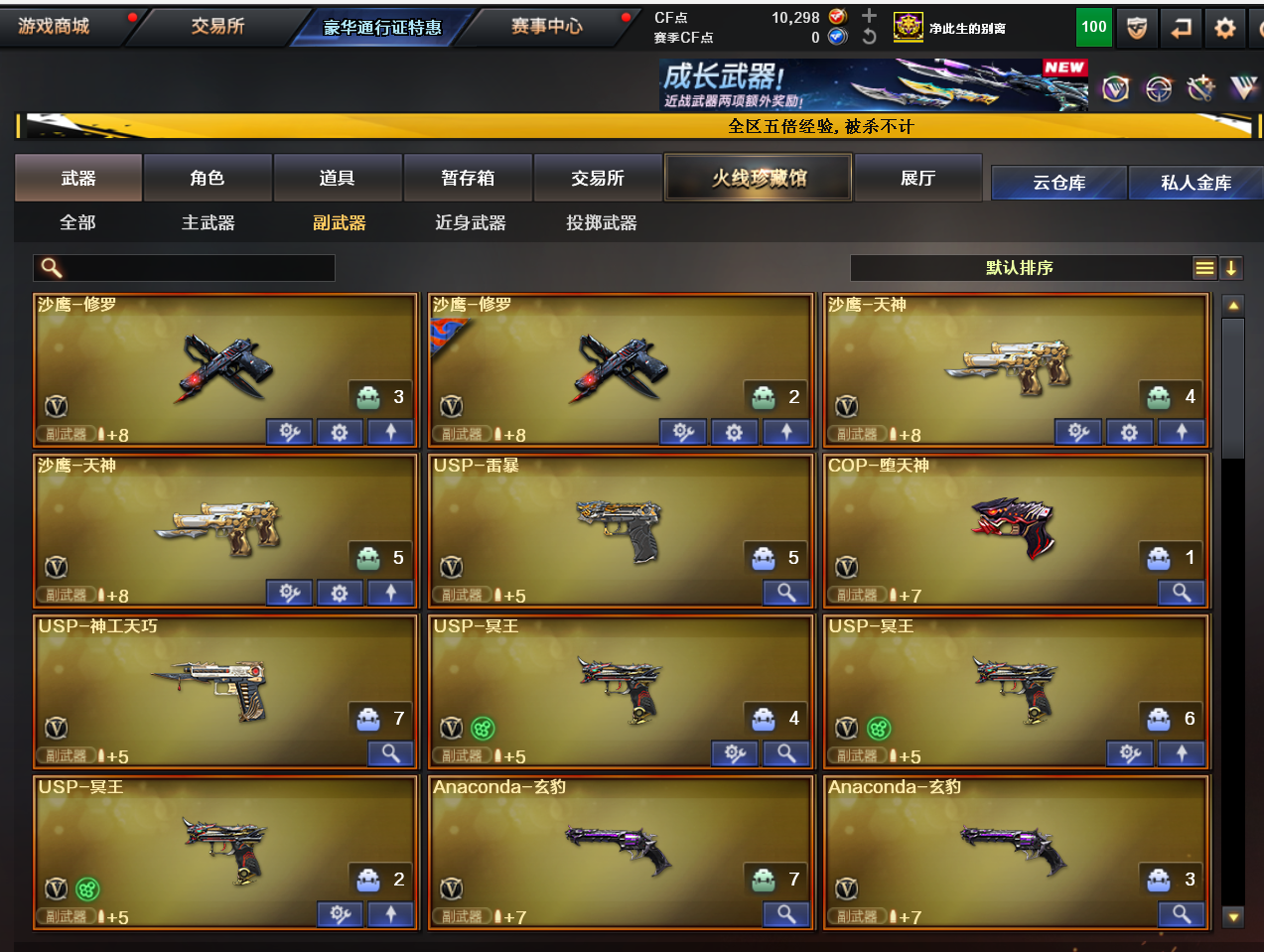 爆破生化满配号神威全套/传说星骇/圣灵/幻神套/裁决套/白虎套/5烈5盘蝴蝶清道夫炼狱酷酷小狮看描述