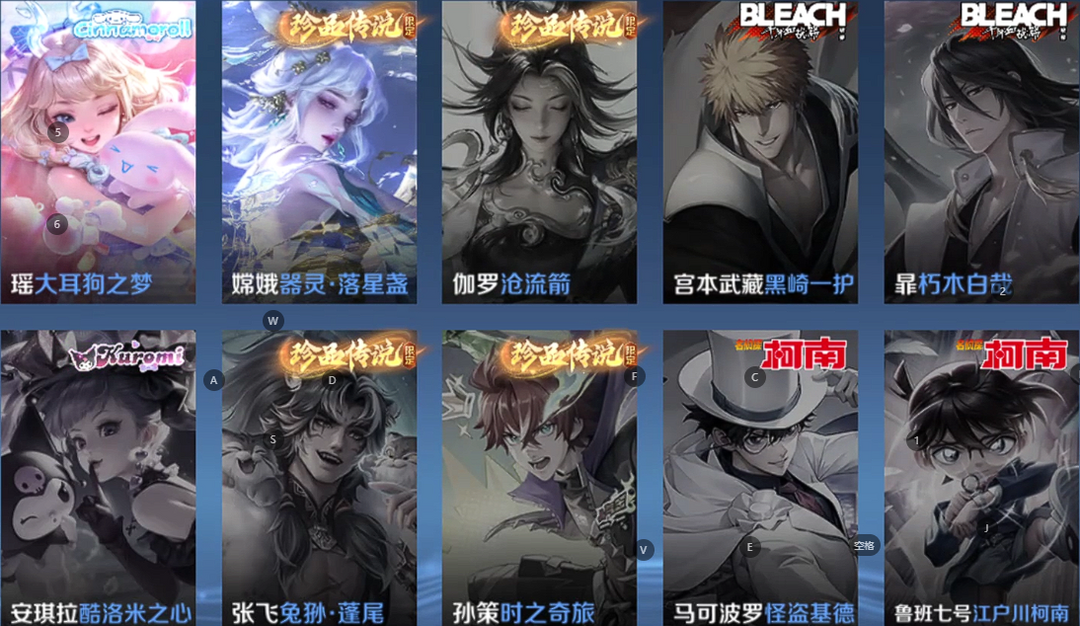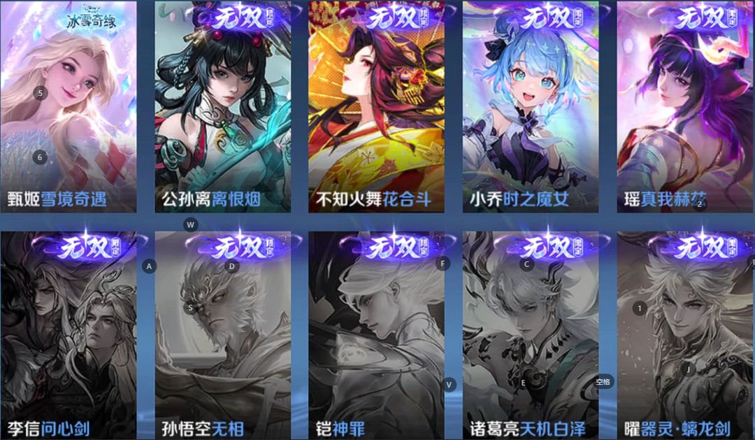 v10、12水563皮、神骥·逐星野、·死亡执政官、刘备星传说时之思念、瑶无双真我赫兹、愿照·九州拓、怪盗基德、画中仙、至尊宝、凤求凰、神威、天魔缭乱