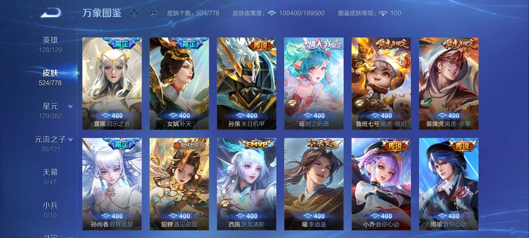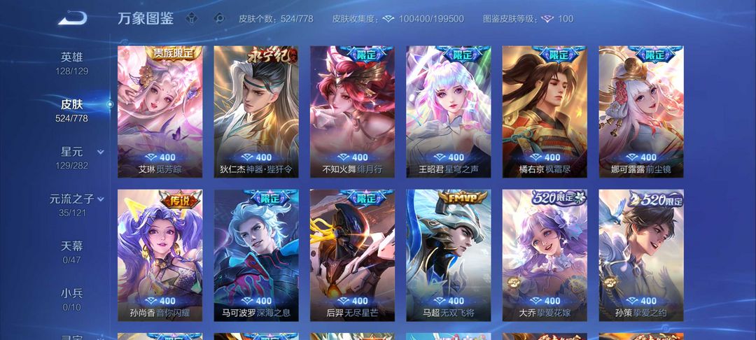 女生号 贵10 多皮肤多传说 别拿那些空号v10来比 要看性价比 貂蝉武则天夏侯惇孙悟空李白鲁班小乔荣耀水晶 妲己九尾无双皮肤 80个传说 473皮肤