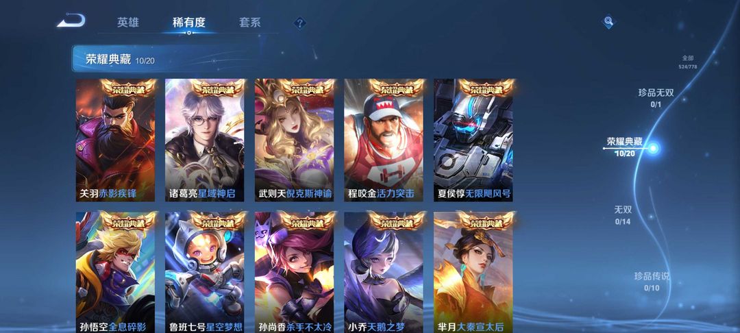 v10❤️523皮肤❤️10典藏❤️57传说❤️7星传说❤️全息碎影❤️一念神魔