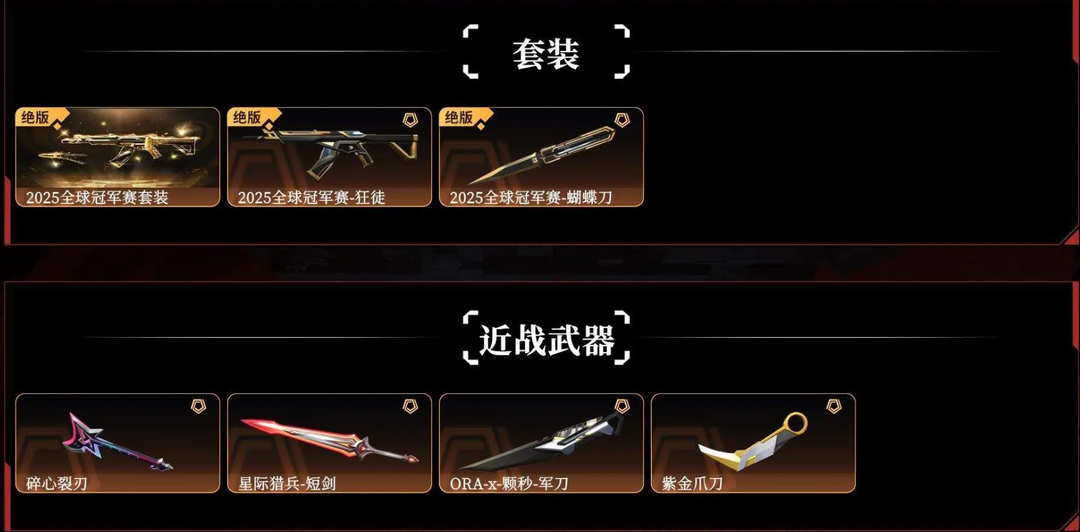 可排❤紫金爪刀25冠军蝴蝶刀❤25冠军套❤荆刺圣骸狂徒❤艾沃莉鬼魅奥丁❤日冕正义❤千灵幻影❤掠影冥驹