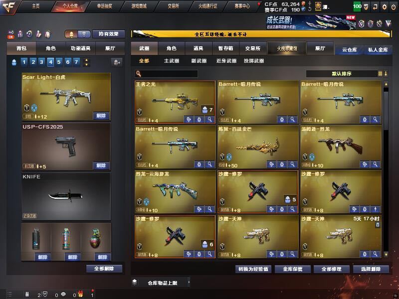 爆破装 四防零国色天香 火麒麟*2 雷神*2 朱雀 毁灭 极光 王者极光 麒麟刺 天神 *2修罗 *3还有俩把烈龙 炼狱百战金芒 潘多拉n暗夜n禁止利用账号进行开挂、使用辅助违规软件诈骗等违规操作。