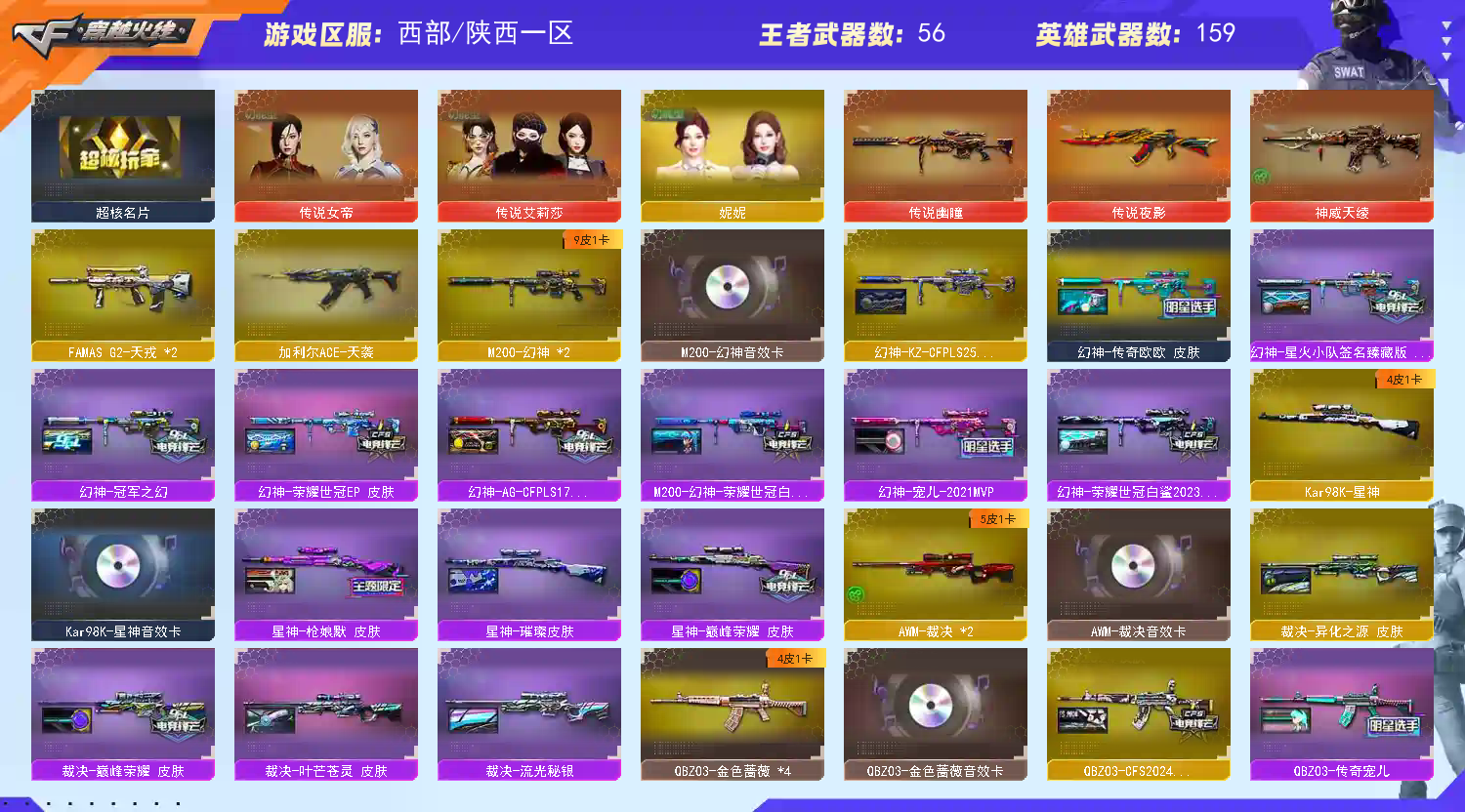 传说女帝艾丽莎幽瞳神威天幻神星火EPkz9皮音卡星神三件套白虎三件套QBZ三件套天戎幻影天袭10冠特