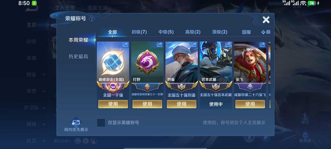 双小国标刘备宫本在榜⭐巅峰万强闪电框⭐可排位/禁巅峰/禁挂机