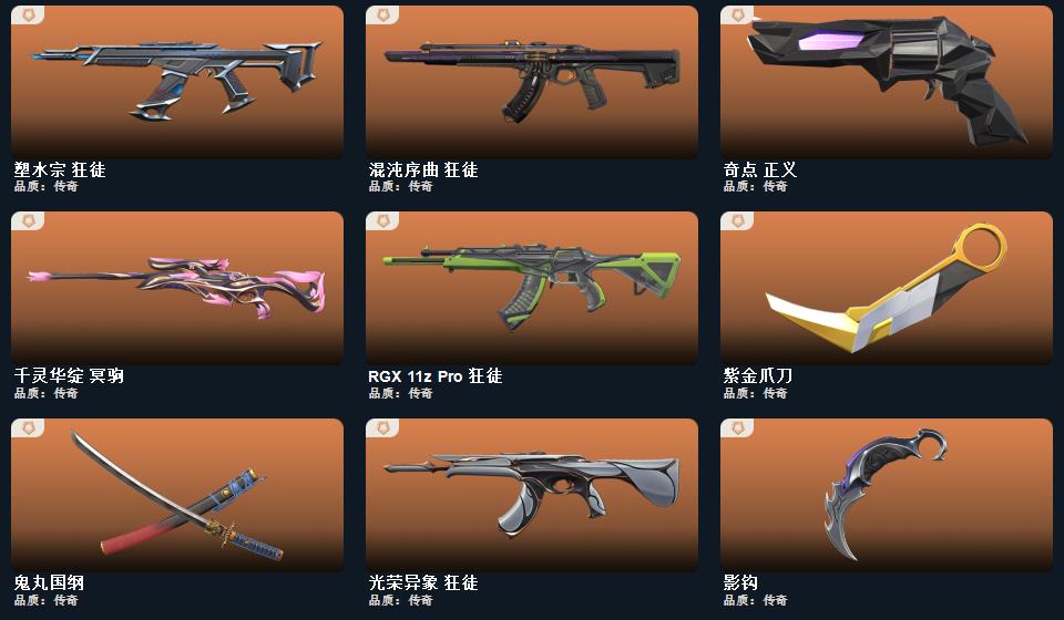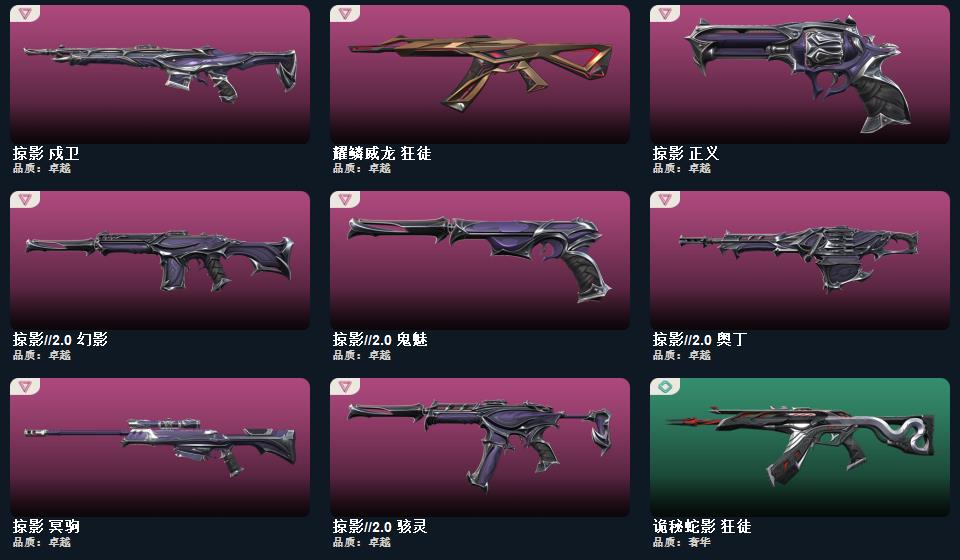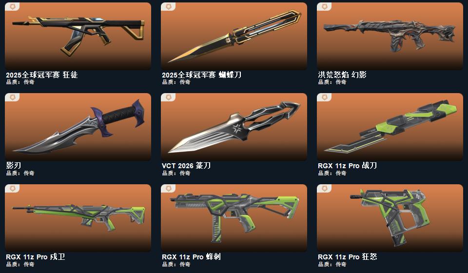 2025全球冠军赛套装,VCT 2026 赛季套装,RGX 11z Pro套装,掠影//2.0套装,掠影套装