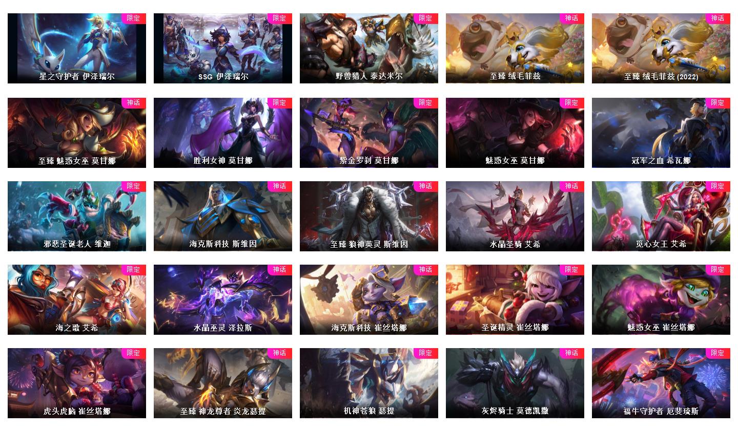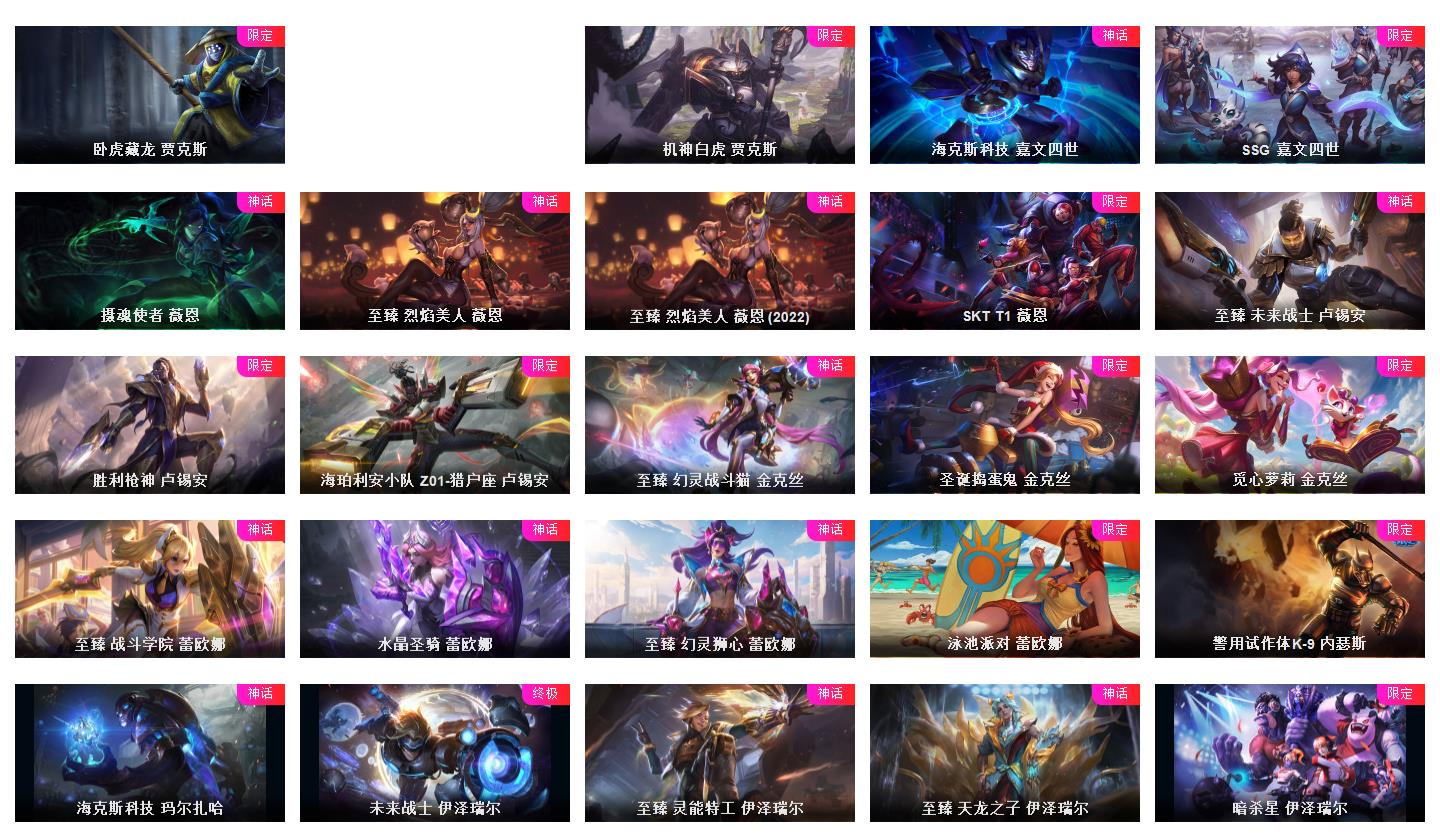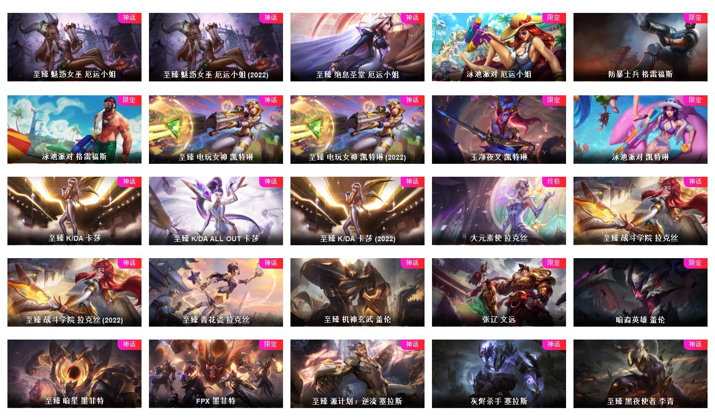 皮肤帝🌺 真实1086皮肤至臻全有 海克丝全有 5色龙虾齐 摄魂VN花木兰原计划 电玩情人节