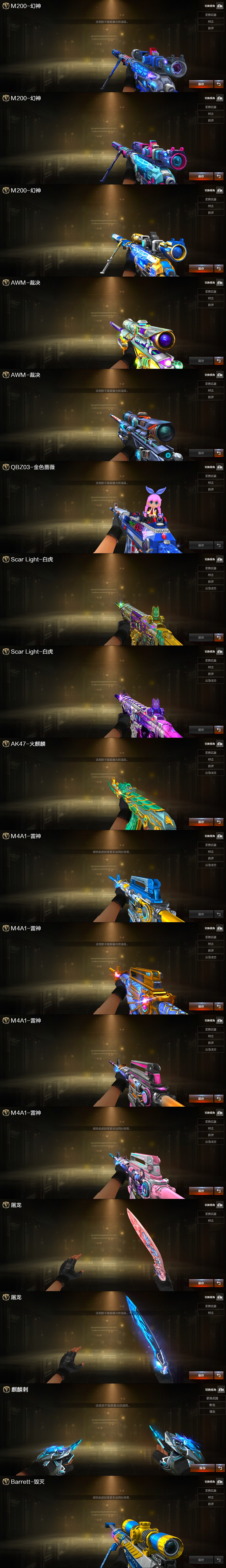 满配9副手幻神三件套3皮星神裁决三件套3皮步枪突破手齐全加利尔天袭G36C幻影白虎三件套QBZ金色蔷