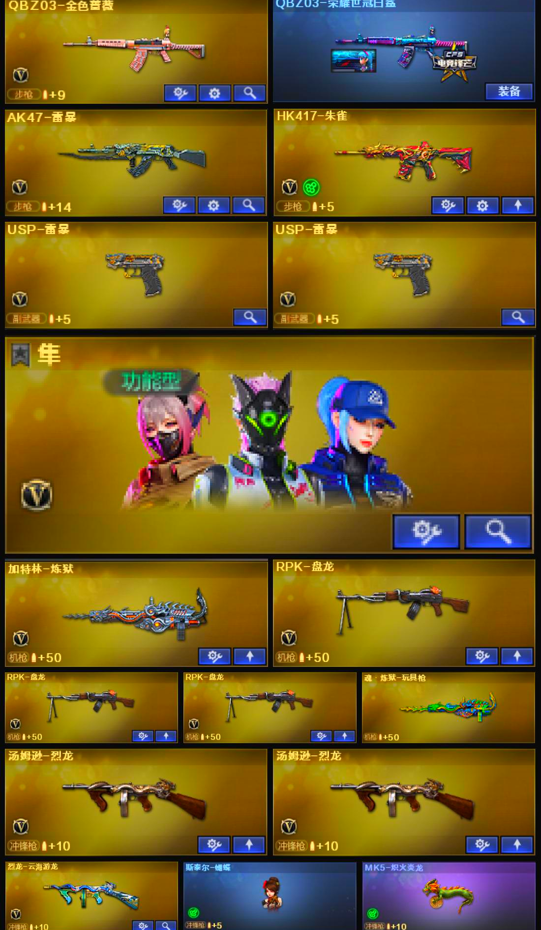 双全♥灵眸幻神带皮♥王者星霆裁决带皮♥qbz带皮雷暴套♥隼3烈3盘斯泰尔蝴蝶炽焰炎龙♥主流武器三件套;USP-雷暴,隼,RPK-盘龙,QBZ03-金色蔷薇,M200-幻神,Scar Light-白虎,传说灵眸,