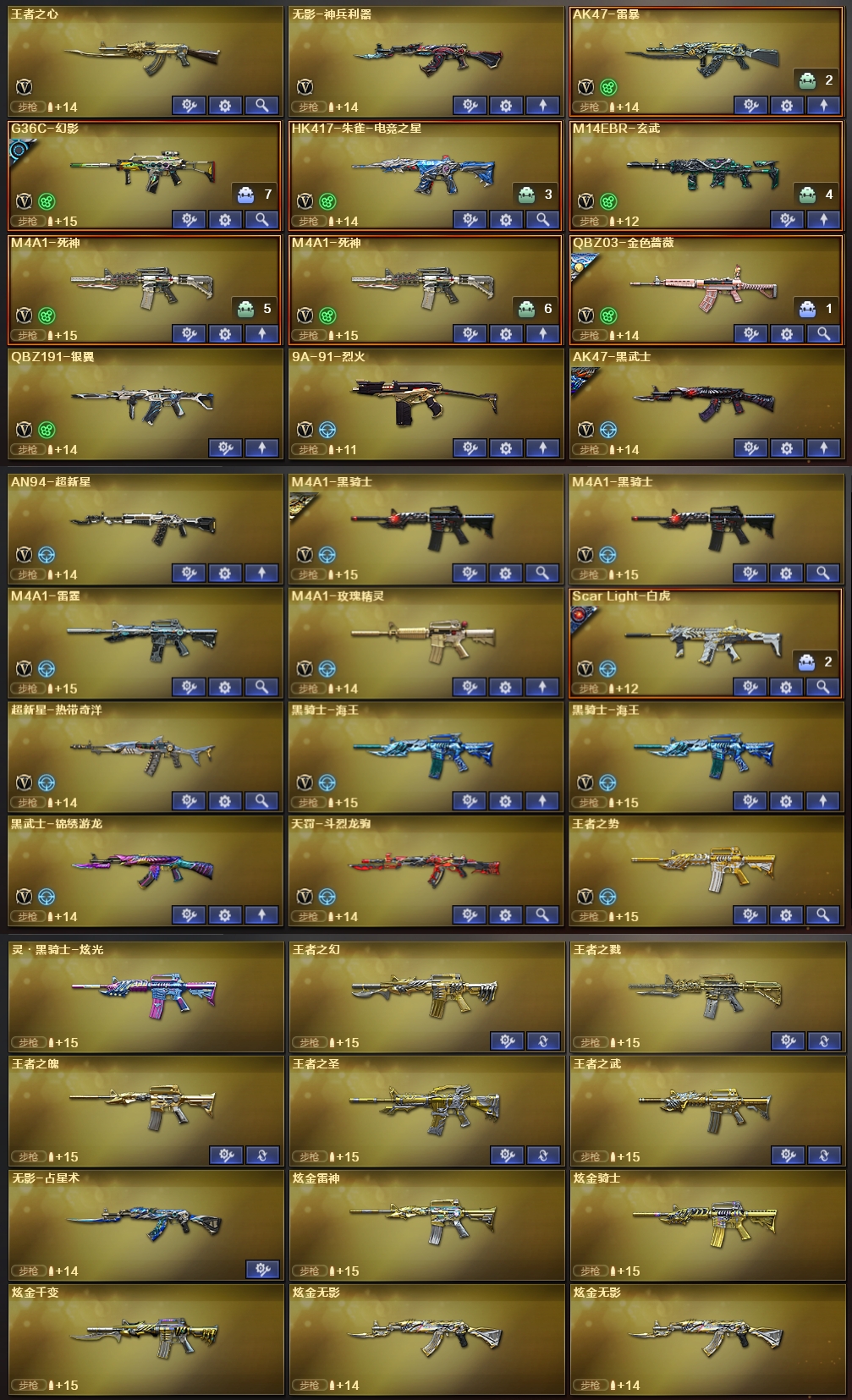 生化爆破全装号,全模式畅玩,幻影,裁决,毁灭,白虎,雷神,QBZ,黑骑士大部分都带音效卡+热门皮肤,动物枪,四防虹儿四防妮妮,全功能道具全弹匣爽玩任何模式。尊耀超核名片,超核玩家名片,神秘礼盒金色昵称都有。;USP-雷暴,USP-雷暴王者,炽芒蝶刃,妮妮,RPK-盘龙,QBZ03-金色蔷薇,G36C-幻影,