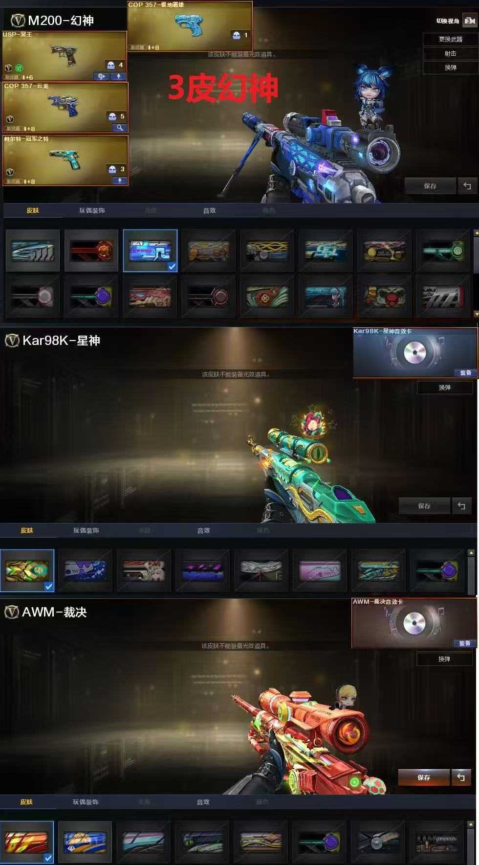 爆破号|幻神+4皮|星神+音效卡+皮|裁决+音效卡+皮|G36C幻影+音效卡|USP冥王|