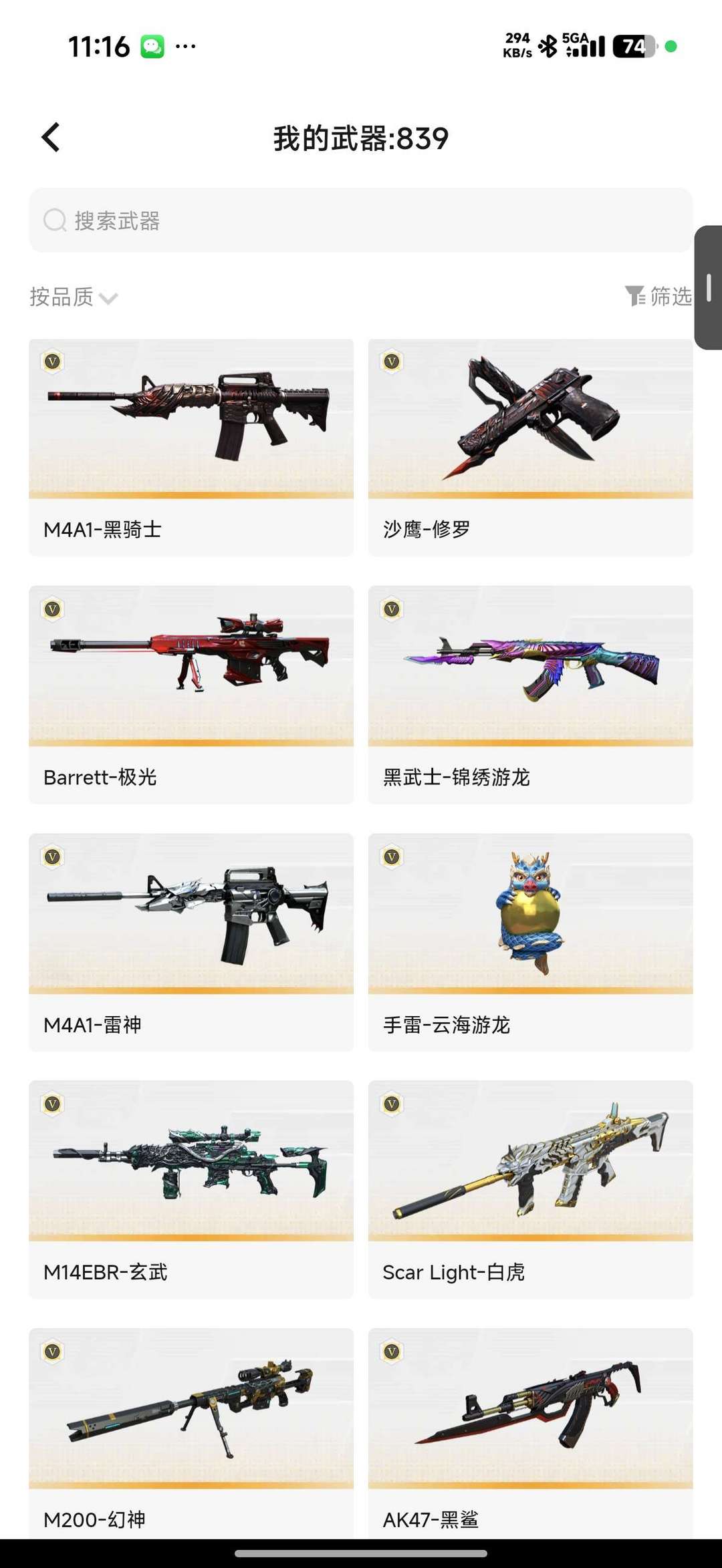 74V,9王者,1炫金,传说灵眸/幻神荣耀世冠EP /幻神CFS2022/幻神星耀 /毁灭巅峰荣耀 /雷神源计划2.0专属 /雷神暗月/雷神维纳斯/黑骑士幻能朋克/白虎热带奇洋 /白虎AGCFPLS20冠军/_影豹/机械姬/妮妮/幻面灵狐/团团/M200-幻神/Barrett-毁灭/Barrett-极光2/Kar98K-星神/M4A1-青龙/M200-幻神音效卡/Kar98K-星神音效卡/Scar Light-白虎-热带奇洋音效卡/Barrett-碧霄极光音效卡/修罗-古蛇迷踪音效卡/炼狱-百战金芒-庆典舞曲音效卡
