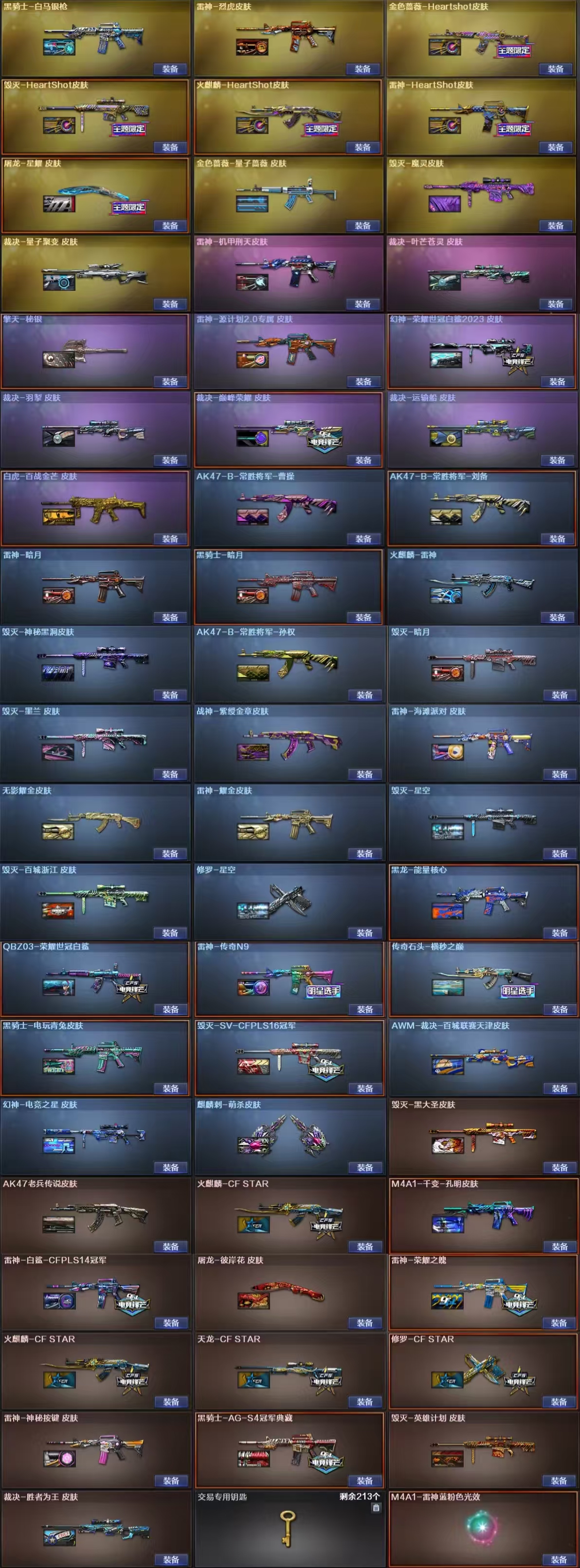 幽冥量子套玄豹套甄选金狐套天戎幻影幻神白鲨电竞星皮音7手枪星神卡裁决套7皮白虎套蔷薇套生化爆破全能