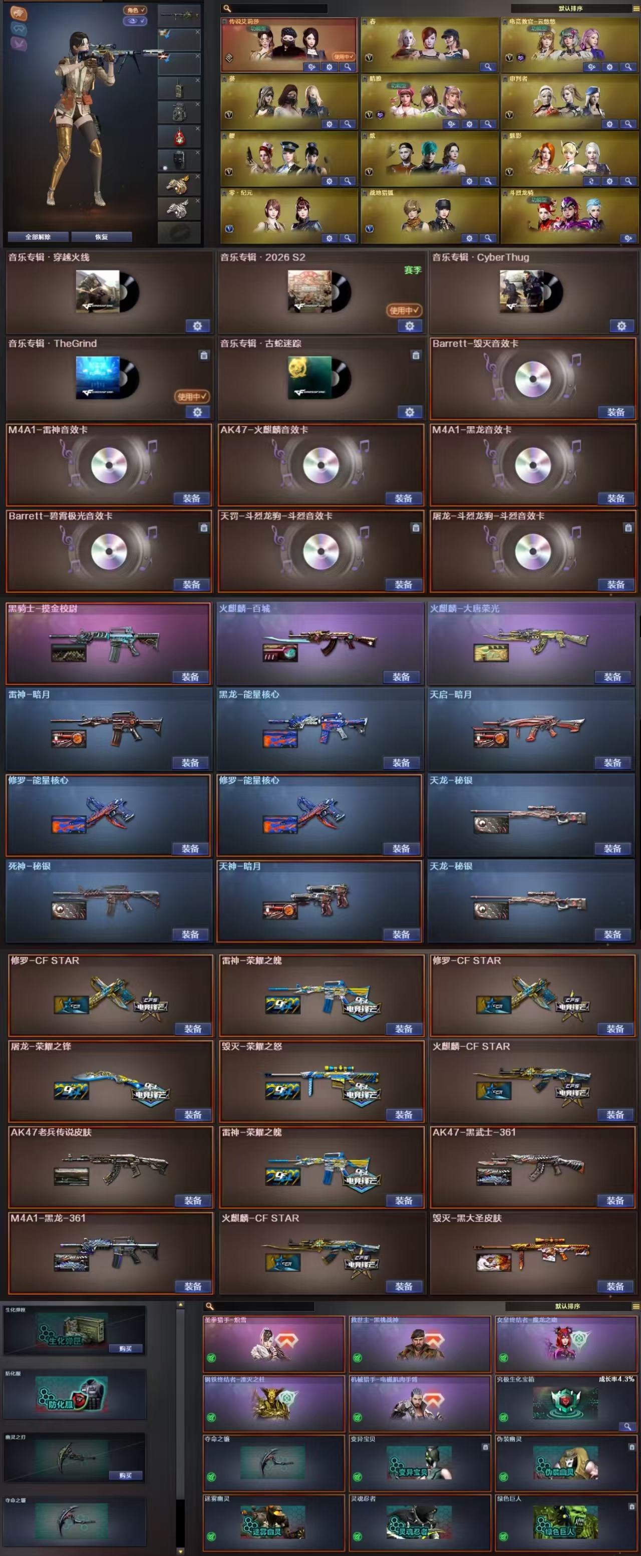 双全装⭐幻神⭐USP雷暴COP雷霆⭐幻兽套⭐六烈六盘炼狱蝴蝶⭐7音效卡⭐荣耀之魄⭐荣耀之锋⭐艾莉莎