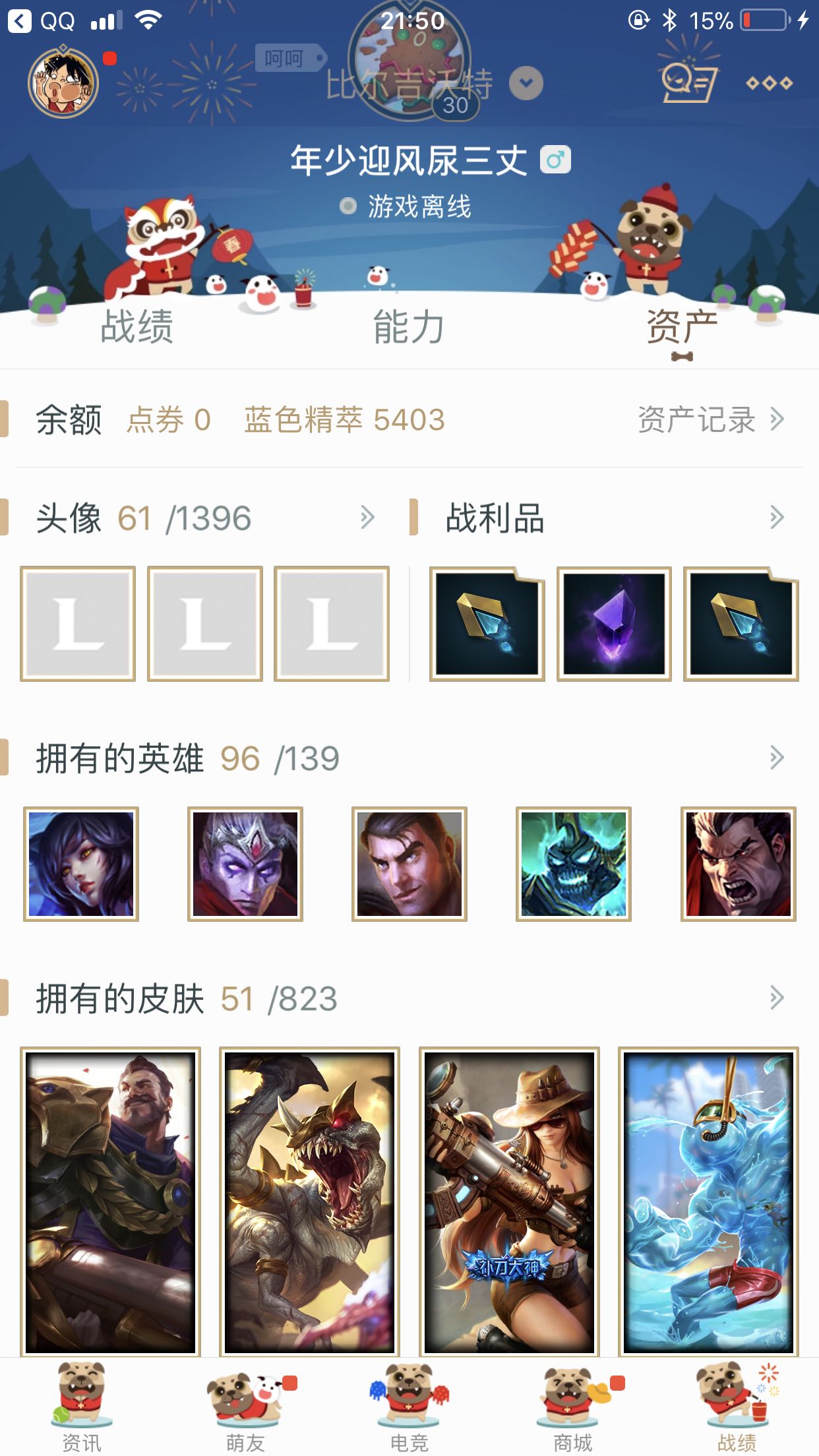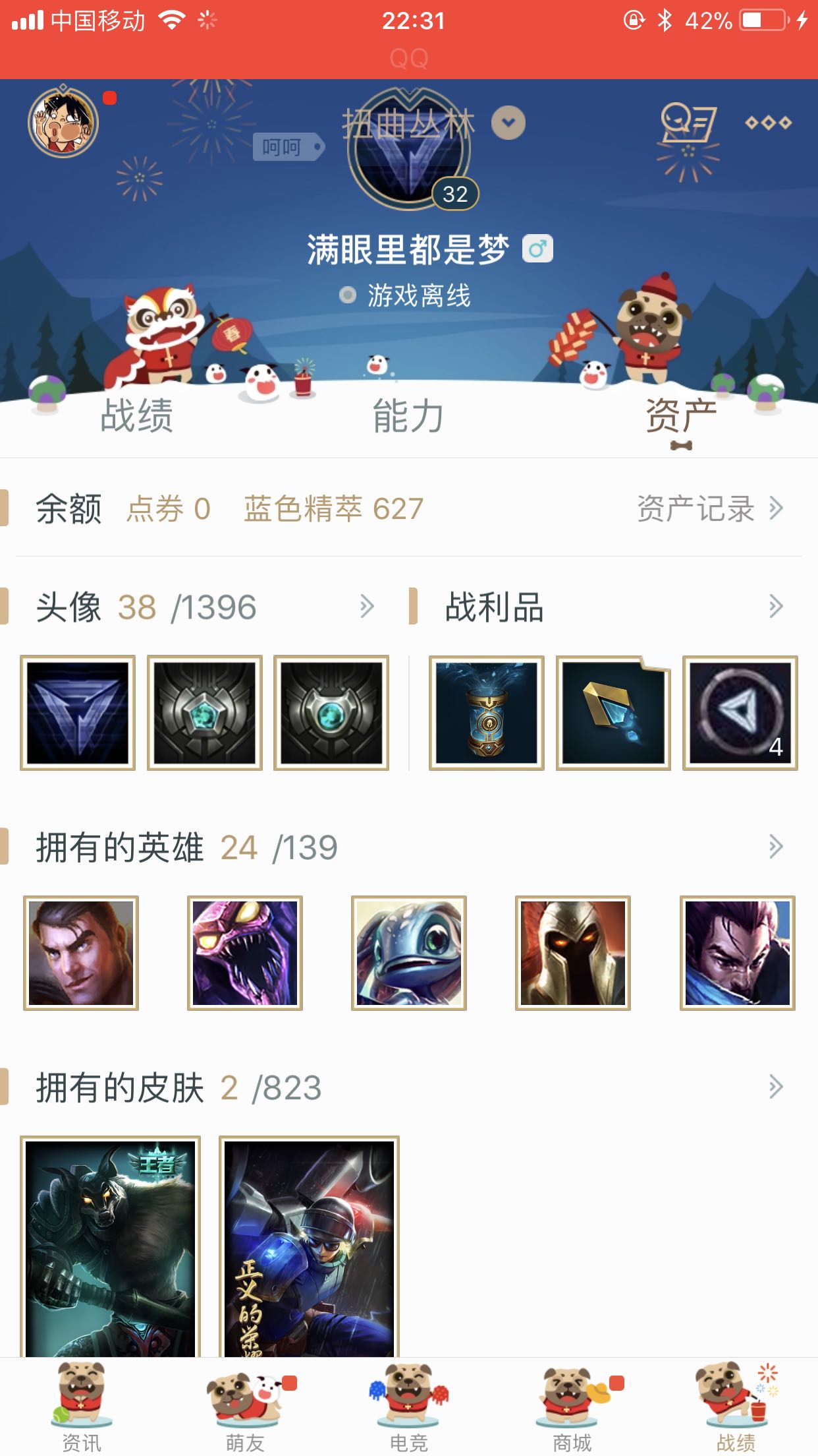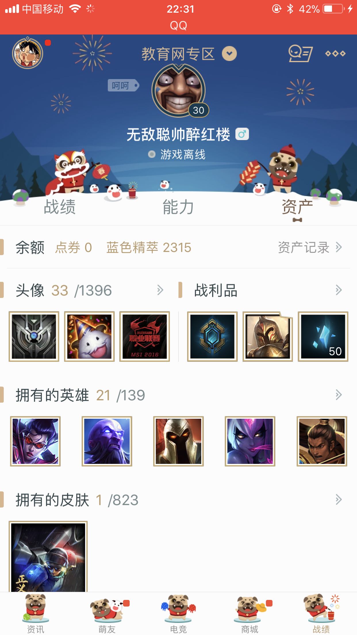 比尔吉沃特。96个英雄。51个皮肤。也有扭曲丛林30级。教育网专区30级