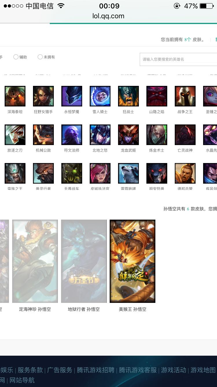 首页 > 租号大厅 > 英雄联盟 > 联盟二区/卡拉曼达 > 限定美猴王#至高之拳瞎子#西部亚索 等8款皮肤!