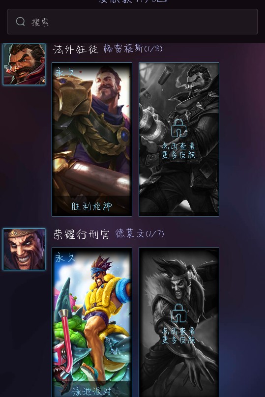 征服之海开黑号 主流英雄都有 可用精粹可加好友 铁血女警 猩红蜘蛛阿卡丽 泳池德莱文 53英雄