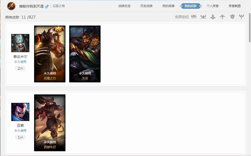 首页 > 租号大厅 > 英雄联盟 > 联盟二区/征服之海 > (积极游戏)32英雄,11皮肤,蛮王恶魔之刃 关羽,亚索西部,诺手 灌篮高手,皇子 吕布,石头人 冰川,蒙多 …