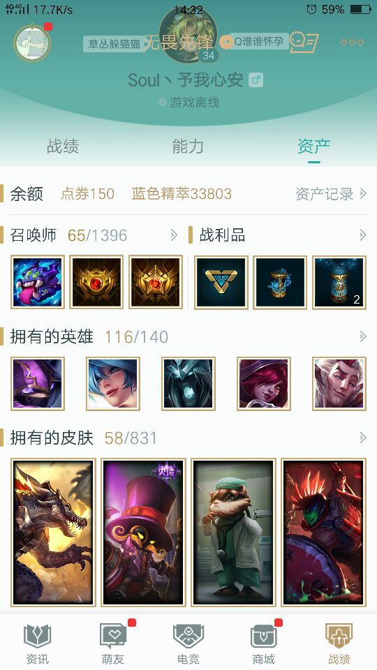 首页 > 租号大厅 > 英雄联盟 > 联盟五区/无畏先锋 > 无畏先锋123个英雄76个皮肤