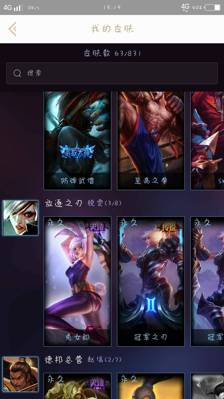 90英雄,亚索全套,锐雯冠军之刃,兔女郎,德玛钢铁军团,原计划四套,还有一些好玩的皮肤。