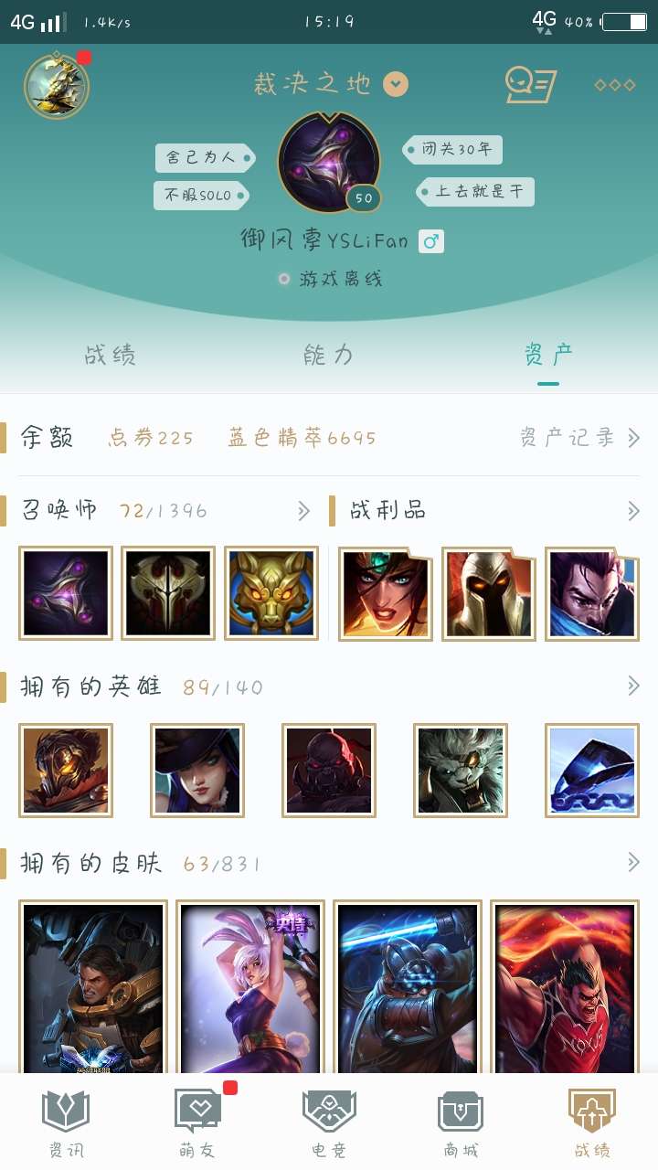 首页 > 租号大厅 > 英雄联盟 > 联盟三区/裁决之地 > 90英雄,亚索全套,锐雯冠军之刃,兔女郎,德玛钢铁军团,原计划四套,还有一些好玩的皮肤。